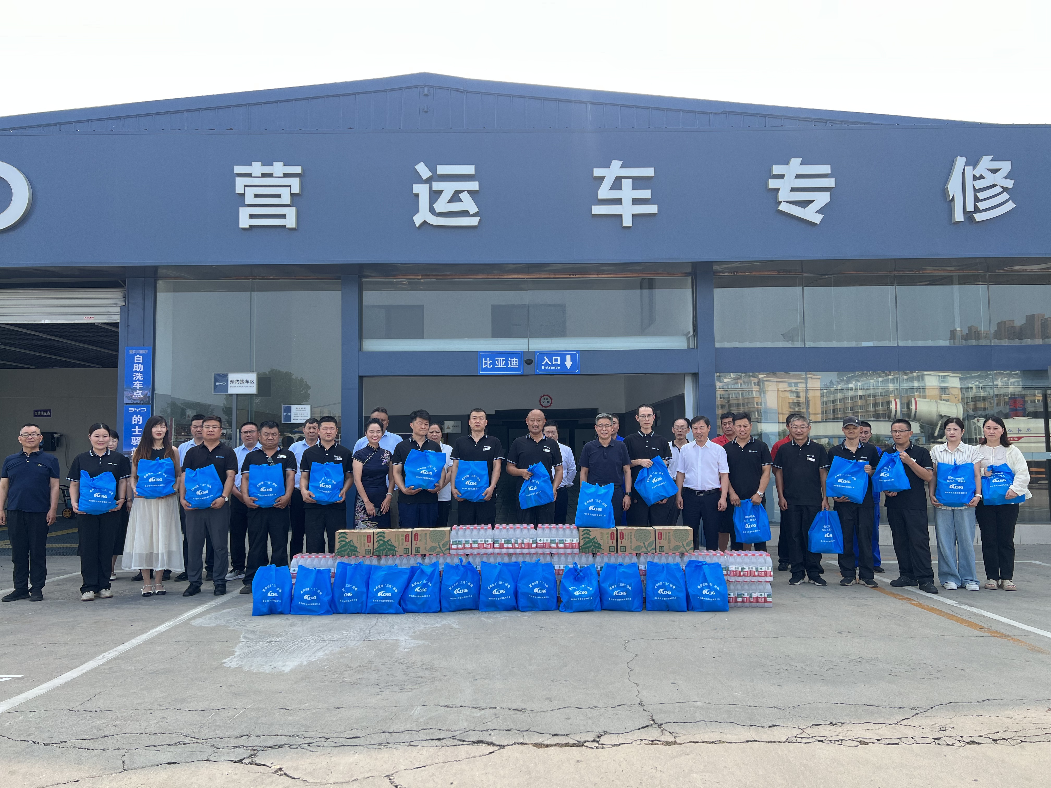 7月18日上午,交通控股千亿(中国)有限千亿官方网页版党委书记、董事长仲伟涛,党委副书记、工会主席陈金师、工会副主席茅红兵、孙华一行等,顶着炎炎烈日深入汽服千亿官方网页版生产一线,开展夏季安康“三送”慰问活动,为高温下坚守岗位的劳动者送去组织的关怀与夏日的清凉。