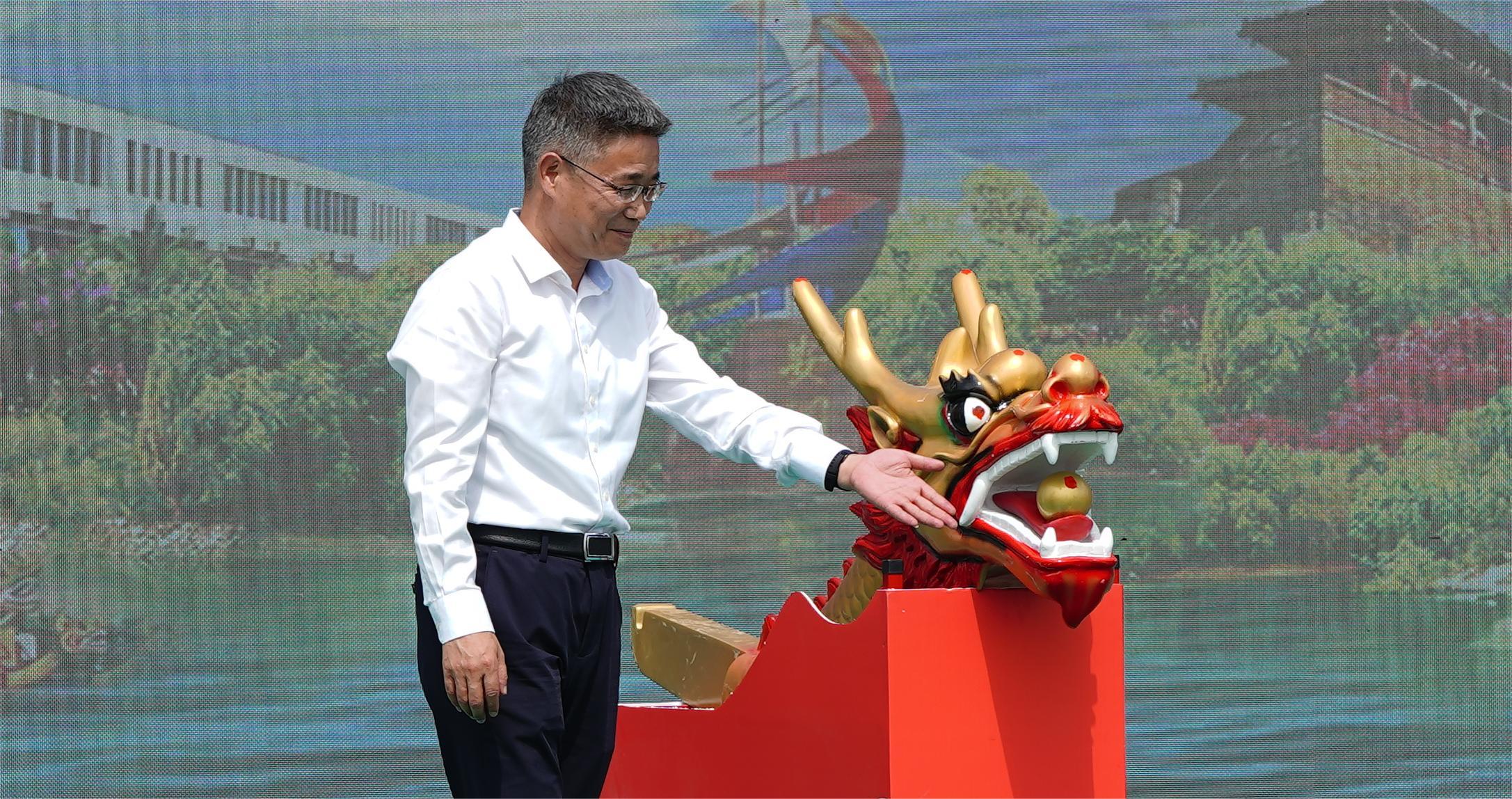 6月7日,海陵湖龙舟赛第三季在渔人码头精彩开赛。作为“海陵湖系列文化旅游活动”的重要组成部分,一年一度的海陵湖龙舟赛已成为幸福河湖文旅活动的重要名片。交通控股千亿(中国)有限千亿官方网页版党委书记、董事长仲伟涛、交通控股千亿(中国)有限千亿官方网页版副总经理、总工程师,交通千亿(中国)有限千亿官方网页版董事长吴心航参加活动,开幕仪式上,仲伟涛为龙头点睛,伴随着“朱砂一点,龙眼始开,画龙点睛,顺风顺水”的美好寓意,大赛鸣枪开始,数舟竞渡,赛桨激腾水花,划出一幅人水和谐共生的生态文明画卷。