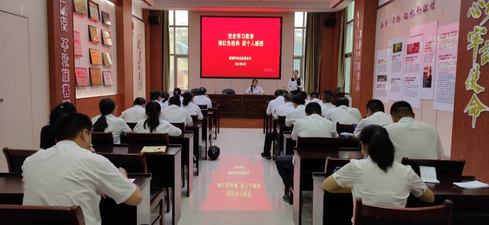 为庆祝中国共产党成立100周年,扎实抓好党史学习教育,激励引导党员干部从党的百年伟大奋斗历程中汲取红色力量,在“七一”建党节到来之际,6月16日下午,新浦汽车总站党总支组织全体党员、入党积极分子开展“读红色经典、谈个人感想”读书分享活动。