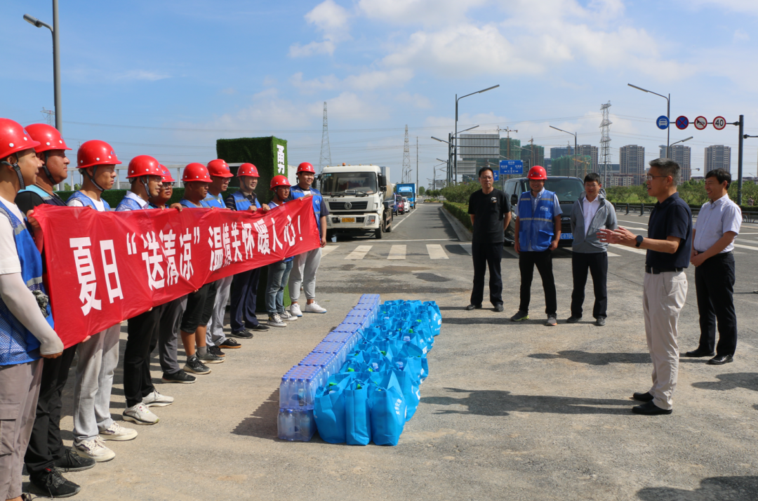 仲伟涛分别走访慰问了海建工程施工现场工作人员和丰达公路养护工区的一线职工,详细了解他们的施工作息时间和安全卫生防护落实情况,对他们不畏酷暑、坚守岗位、努力工作的精神给予充分肯定。同时叮嘱大家要加强自身安全防护,在工作的同时注意防暑降温,增强自我安全防范意识,安全顺利度过高温季节。