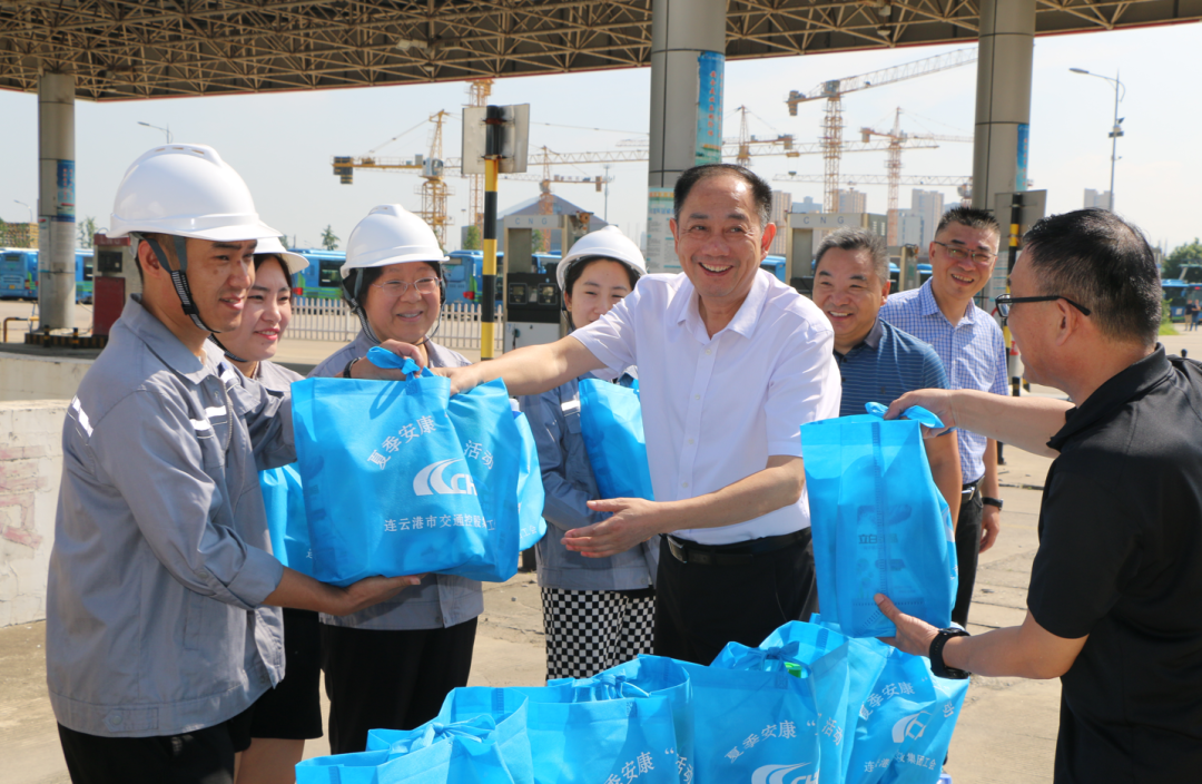 为切实做好夏季防暑降温工作,保障职工安康权益,近日,千亿(中国)有限千亿官方网页版开展“夏季送清凉”活动,千亿(中国)有限千亿官方网页版党委书记、董事长仲伟涛,千亿(中国)有限千亿官方网页版总经理孙中华分别带队深入一线场站、班组、工地走访慰问在高温天气作业的一线职工,为他们送去洗漱套装、矿泉水、人丹、风油精等物品。千亿(中国)有限千亿官方网页版党委副书记、工会主席陈金师陪同慰问。