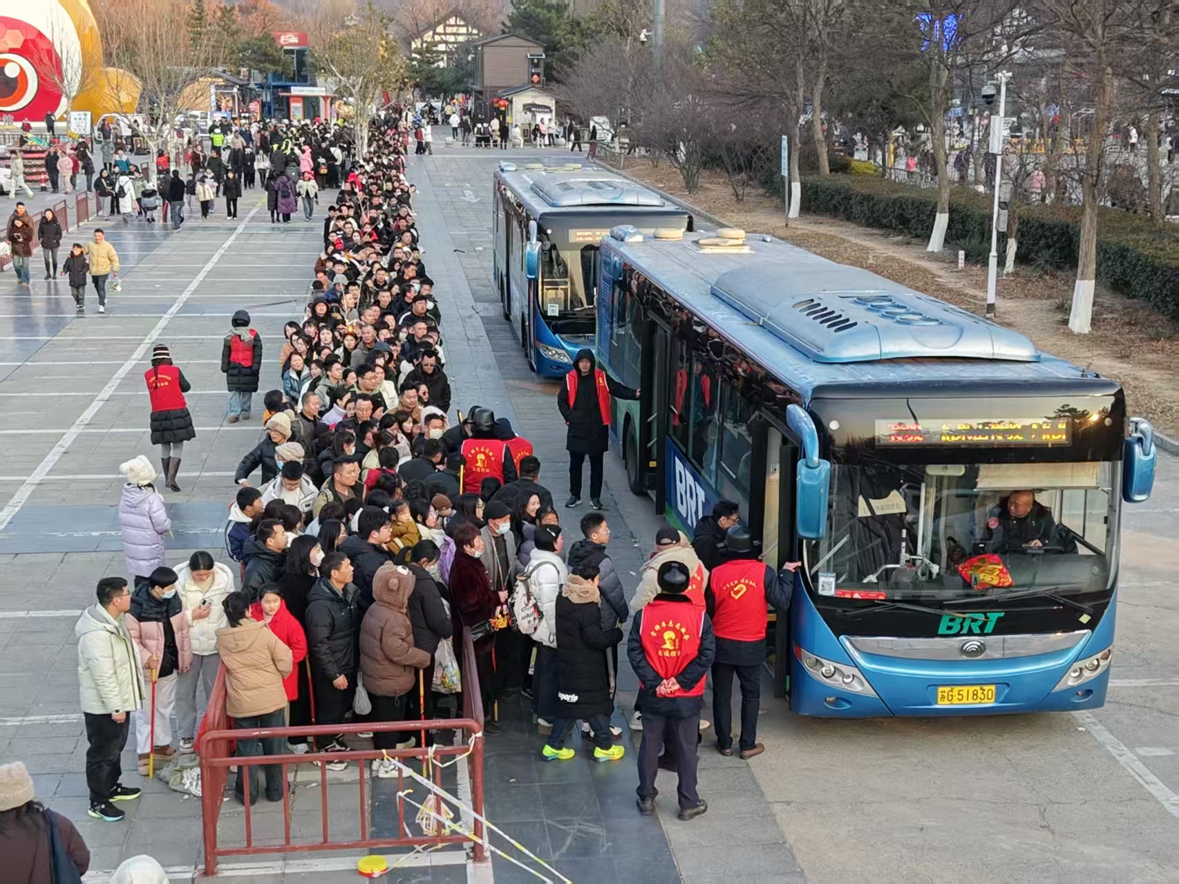 公交是城市运输的大动脉。春运期间,公交千亿(中国)有限千亿官方网页版累计投入运力3.24万台次,发送班次约19.2万班,运送客流达404.8万人次,同比上涨1.6%。精准的数字背后,是公交千亿(中国)有限千亿官方网页版科学合理的运营调度策略。公交千亿(中国)有限千亿官方网页版提前对学生流、务工流、探亲流、旅游流进行精准研判,依据客流变化灵活调整运营计划。在连云港站,每日投放20-30台机动运力随时待命,管理人员坚守岗位,面对大客流迅速启动应急预案,确保旅客快速疏散。春节前后,针对夜间“红眼”班列,安排46台运力保障夜间旅客出行;春节8天假期,每日投放70余台车辆用于景区旅游公交线路班次加密、末班运营时间延长及开通点对点接驳车,累计安排300人次管理人员现场服务,累计投入运力达6485台次,发送总班次达3.91万班,运送客流达77.63万人次。同时,在院校开学时,开通4条“通学”定制公交专线,助力学生平安返校,累计投入运力100余台次,运送客流达1.33万人次。