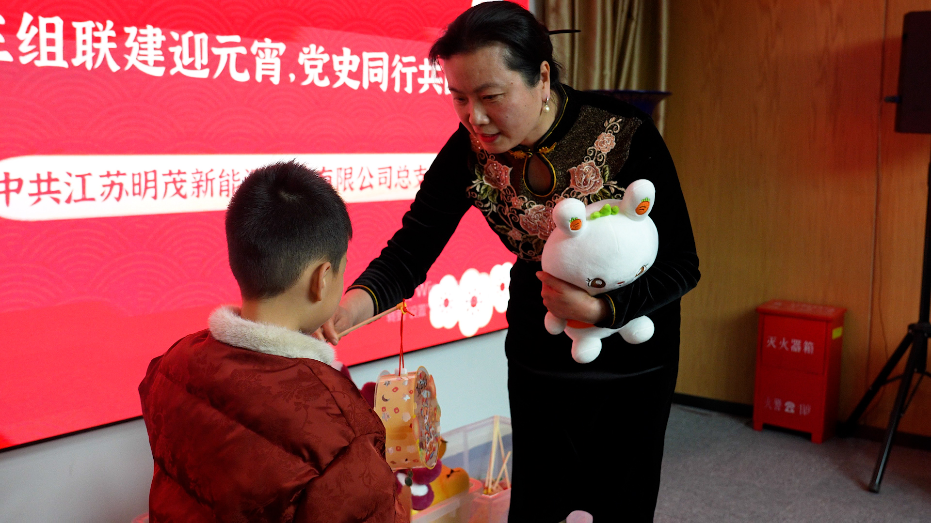 活动伊始,明茂千亿官方网页版副总经理、工会主席蒋月琴给现场职工子女赠送元宵节灯笼和玩偶。小朋友们都有说有笑,脸上洋溢着喜悦的笑容。随后,由职工及职工子女代表带着大家学习了元宵节的风俗习惯和元宵节党史小故事。大家在传统节日文化的多彩底蕴中,共同回顾了中国共产党的百年光辉历程,在党性教育中,汲取了奋进力量。