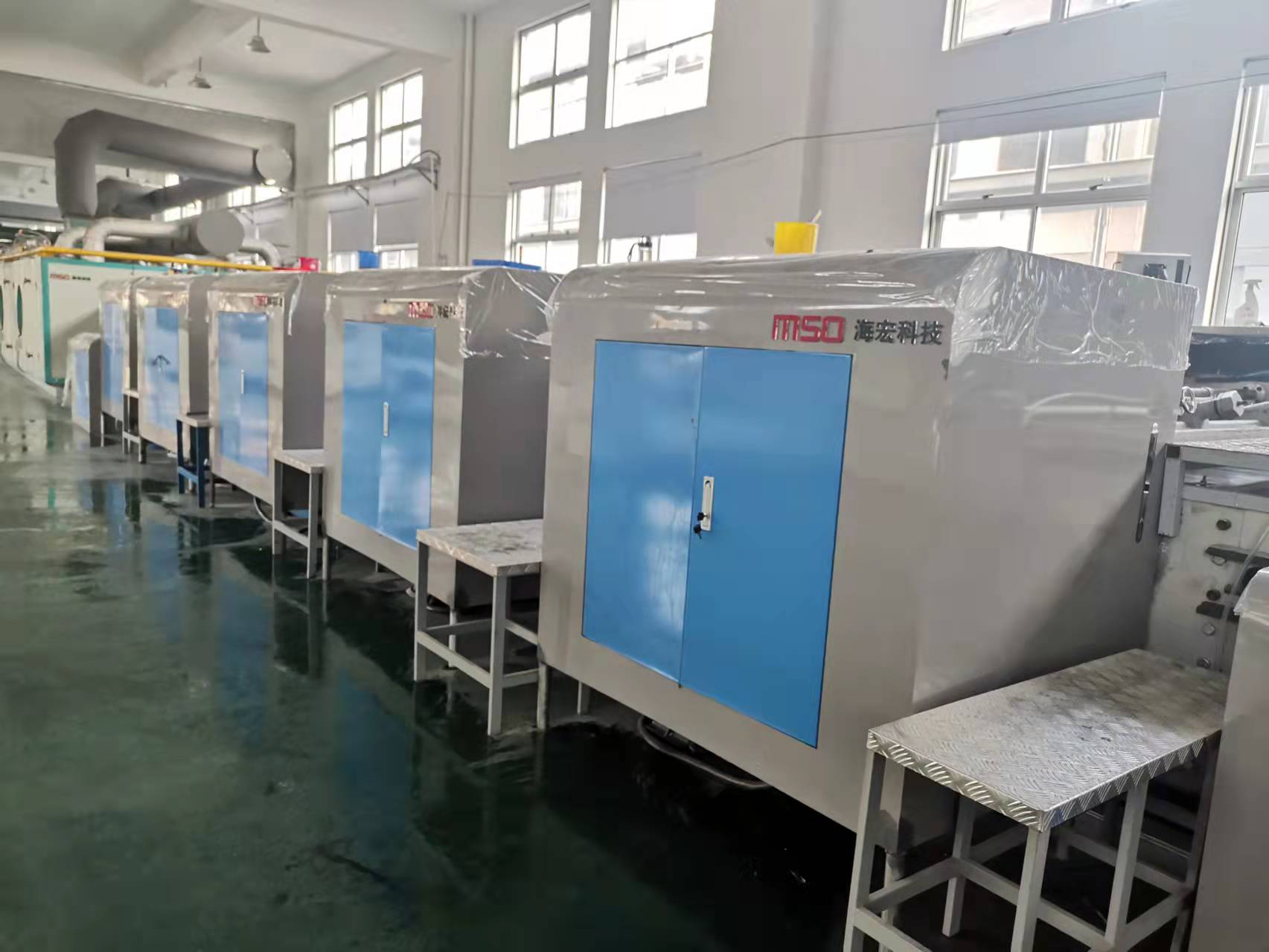 投产的生产设备MSO高速凹版印花机是海宏科技自主研发的印花设备,采用千亿官方网页版核心高端数控系统,解决了高速精准套印,快速换版、套间叠色等一系列核心技术问题。设备的8大技术创新,解决了纺织印染行业的高污染、高能耗等环保问题,真正实现零污染,零排放,绿色印花。