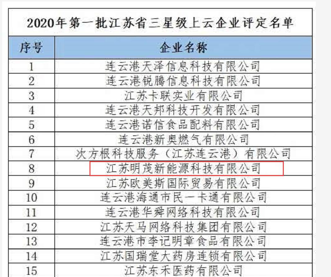 日前,明茂新能源千亿官方网页版顺利通过江苏省三星级上云企业评定工作。这是该千亿官方网页版落实《省政府关于深化“互联网+先进制造业”发展工业互联网的实施意见》和省工信委要求,提升企业管理结出的又一成果。