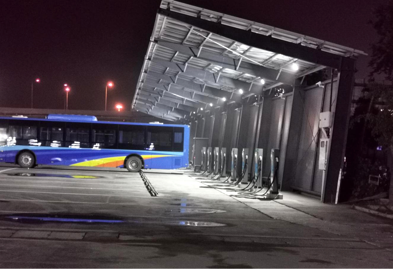 海滨大道新能源汽车充电站承担连云区70%的公交车辆充电任务,属于大型公交车辆枢纽站点。自2016年运营以来,充电桩设施全部暴露于室外,无任何遮挡。遇到暴雨、强雷等恶劣天气,室外作业存在巨大安全隐患,只能被迫停止公交车辆充电,造成公交车辆停运,给市民出行带来不便。随着公交千亿(中国)有限千亿官方网页版新能源车辆运营时限的增长,特别是夏季高温无遮挡,冬季雨雪积压腐蚀,致使设备故障频率增加,车辆充电效率降低,影响公交正常运行。