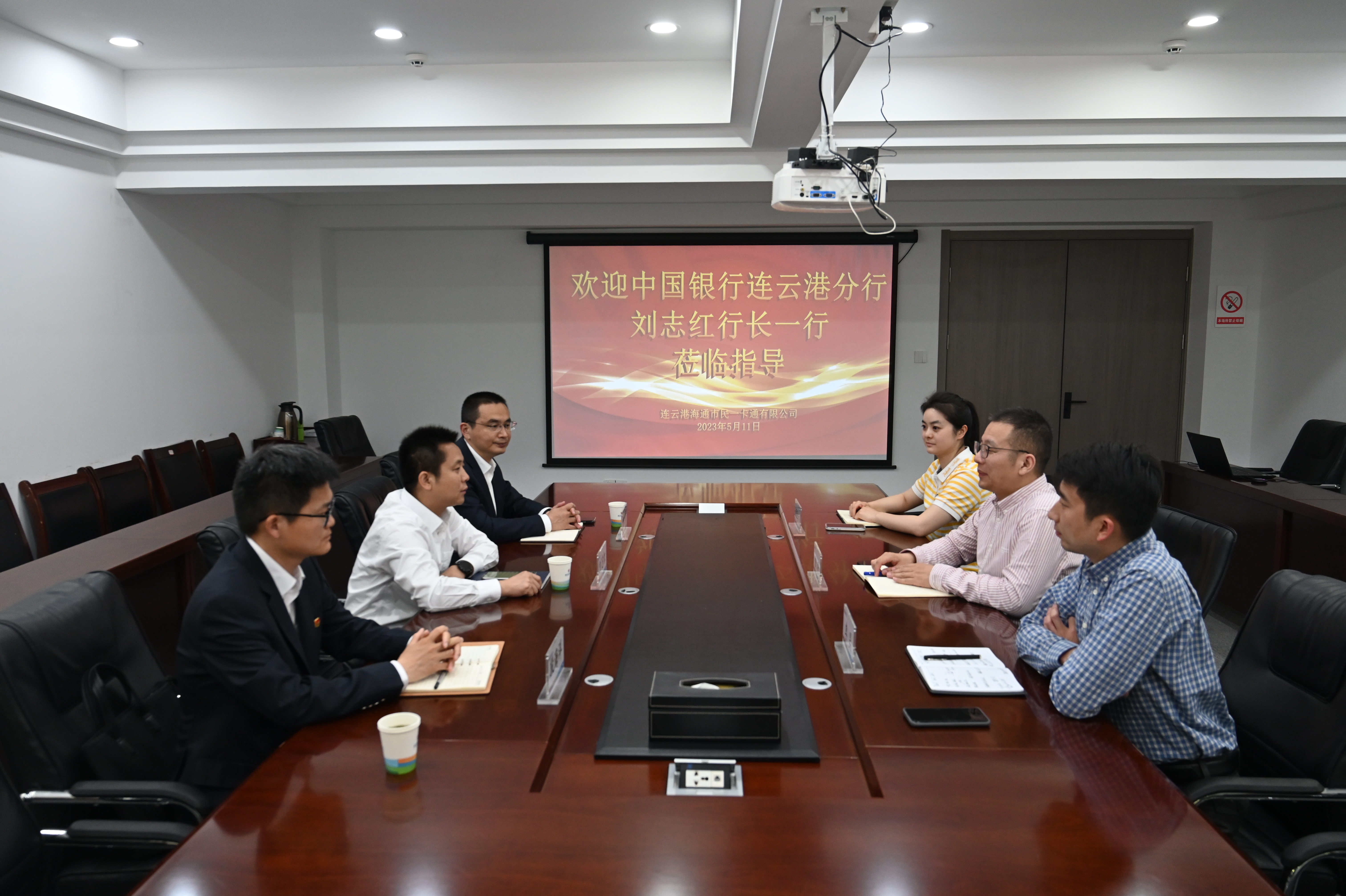 为有效推进数字人民币应用和智慧停车业务进展,5月11日下午,市民卡千亿官方网页版邀请中国银行连云港分行副行长刘志红等一行人来我司召开业务交流会,市民卡千亿官方网页版总经理陈琛、总经理助理李昊、财务审计部负责人参加会议。