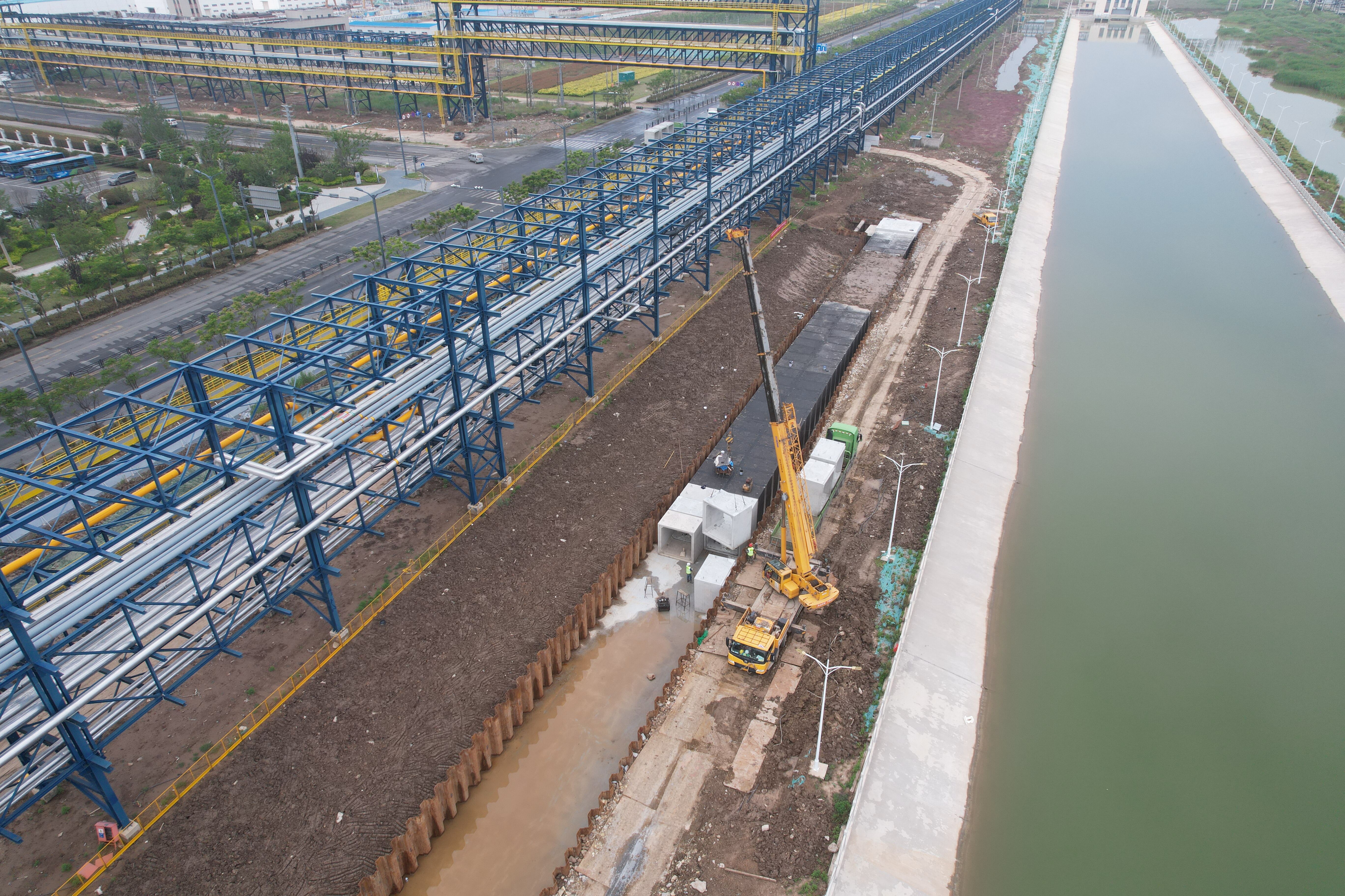 日前,位于徐圩新区石化基地内部的荣泰仓储西侧道口接线道路及桥梁新建工程石化二道排水工程正在进行排水箱涵施工。截至目前,已完成现有工作断面的基坑开挖及地基处理约350米、钢板桩支护1200根、围檩及钢支撑安装200多吨。排水工程主体结构箱涵安装,已完成约280米,占比约70%。