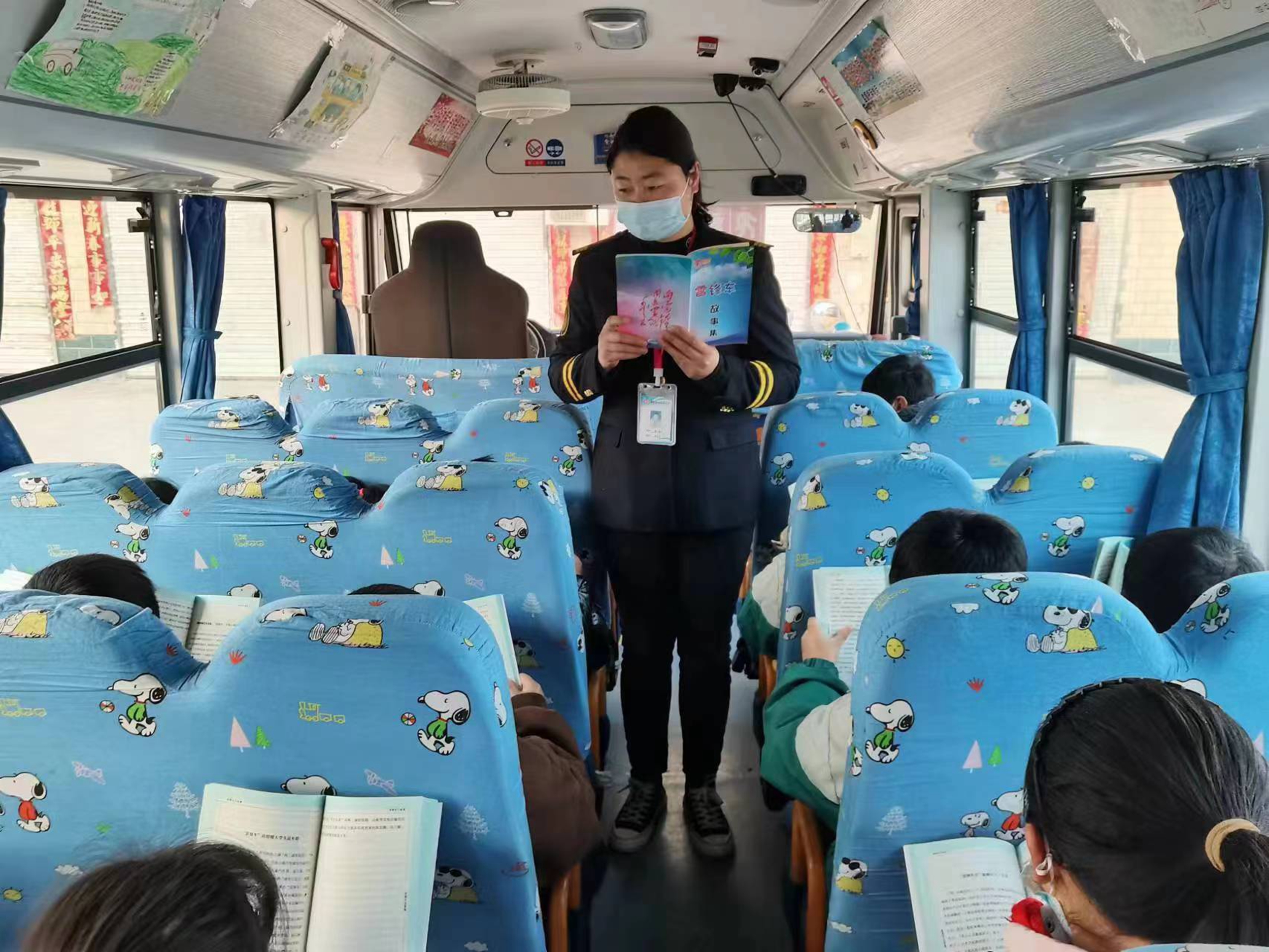 每学期正式开学前,都会提前与学校对接乘坐校车的孩子名单,核对人数、孩子的联系电话,与家长们提前沟通了解每个孩子的性格,记录下要注意的事项。为了能更快地记住每个孩子,她会在孩子上车时和孩子打招呼确认孩子的姓名,根据孩子们的座位,将他们的姓名贴到座椅后背上。最初,孩子们面对这位陌生阿姨不敢过多交流,慢慢的,在她细心地照看之下,孩子们喜欢上了这个温暖的阿姨。