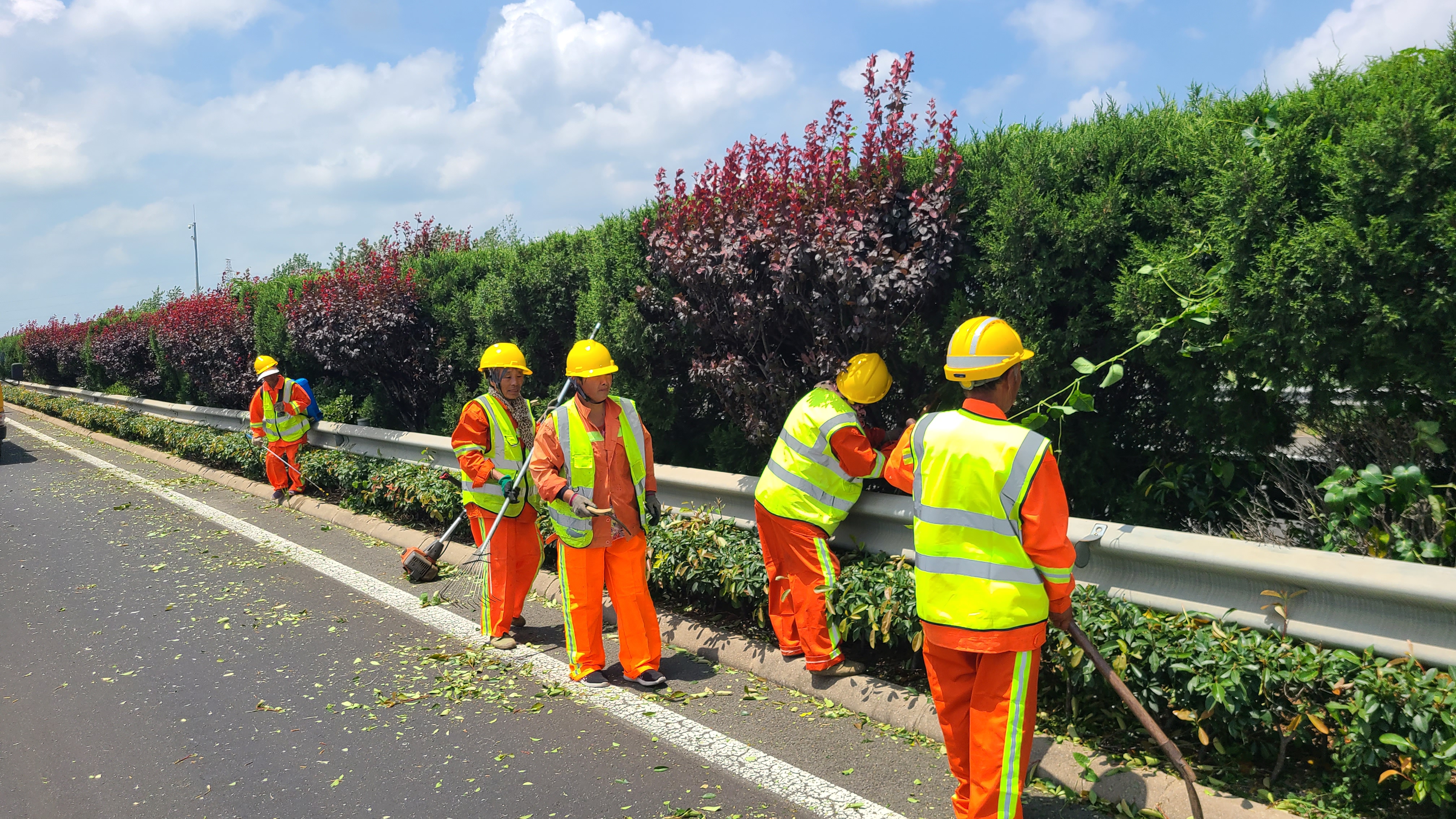 此次迎检,千亿官方网页版共累计投入360余人工,32台工具车台班,打草机12台,边坡修剪机6台班,完成全线护栏板小广告清理90.2km,中分带综合治理35km、补植蜀桧280余颗,边坡机械打草77Km,清理桥梁泄水孔12.6Km,为公路沿线人民群众提供了“畅、安、舒、美”的通行环境,顺利通过此次“国评”。