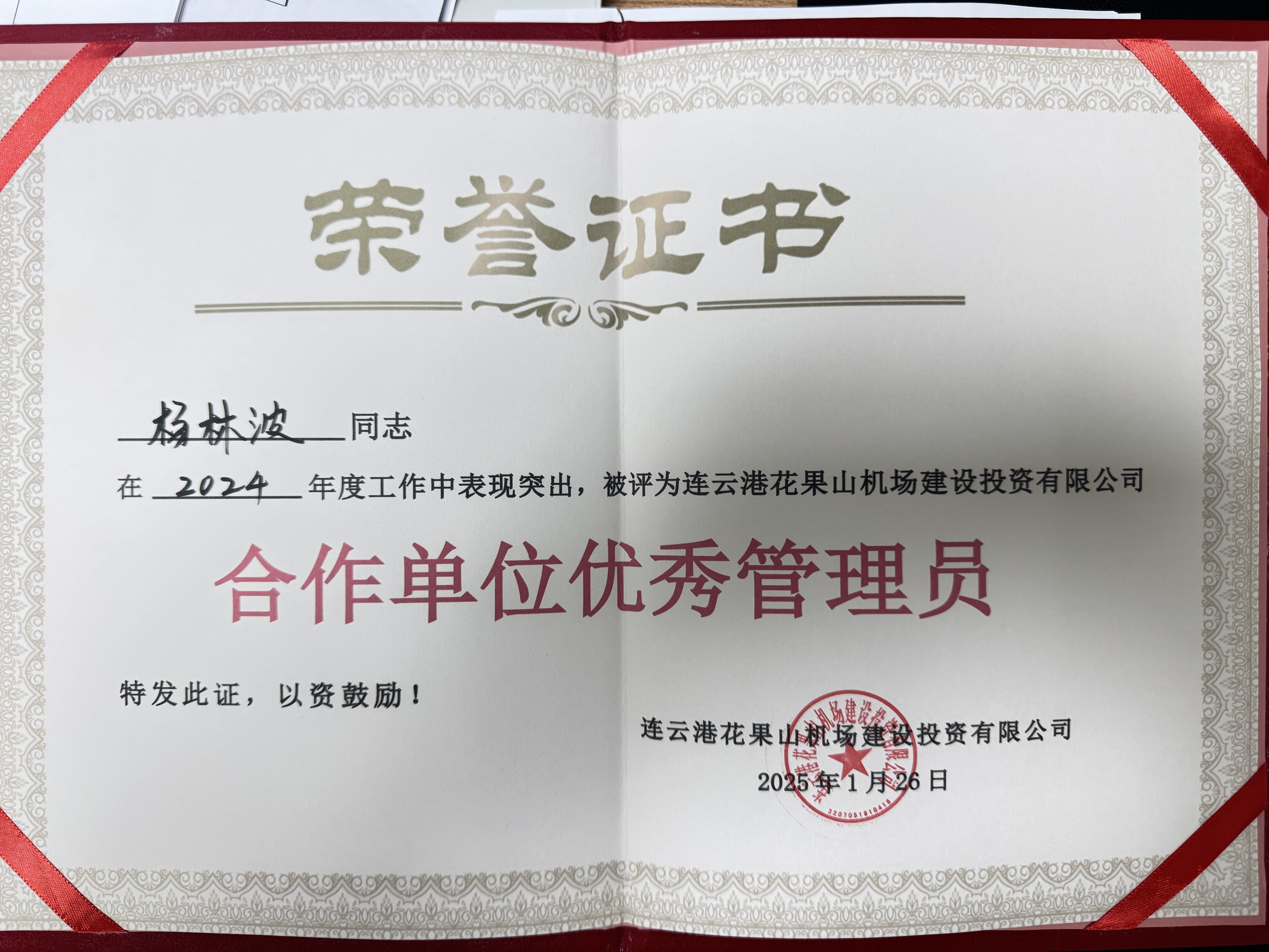 近日,连汽定制客运事业部机场班管理员杨林波凭借出色表现,荣获连云港花果山机场建设投资有限千亿官方网页版颁发的“合作单位优秀管理员”荣誉证书。这一荣誉不仅属于杨林波个人,更是对整个机场班团队优质服务与敬业精神的高度认可。