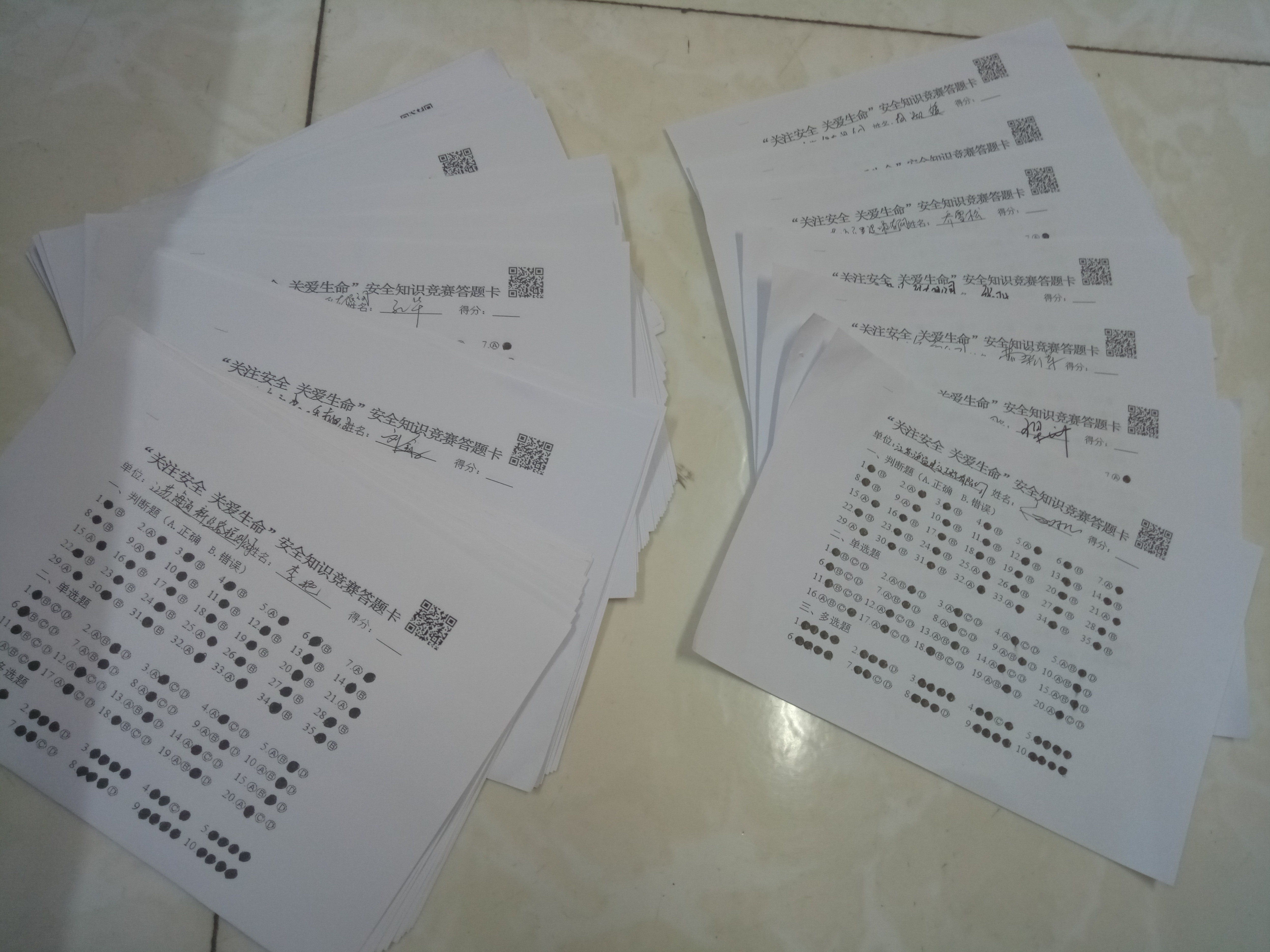 此次竞赛活动本着节约环保的原则,进行无卷答题,参赛人员通过收集扫描答题卡上的二维码,形成一份竞赛答卷,填写答题卡。目前共收到广大干部职工竞赛答题卡300余份。