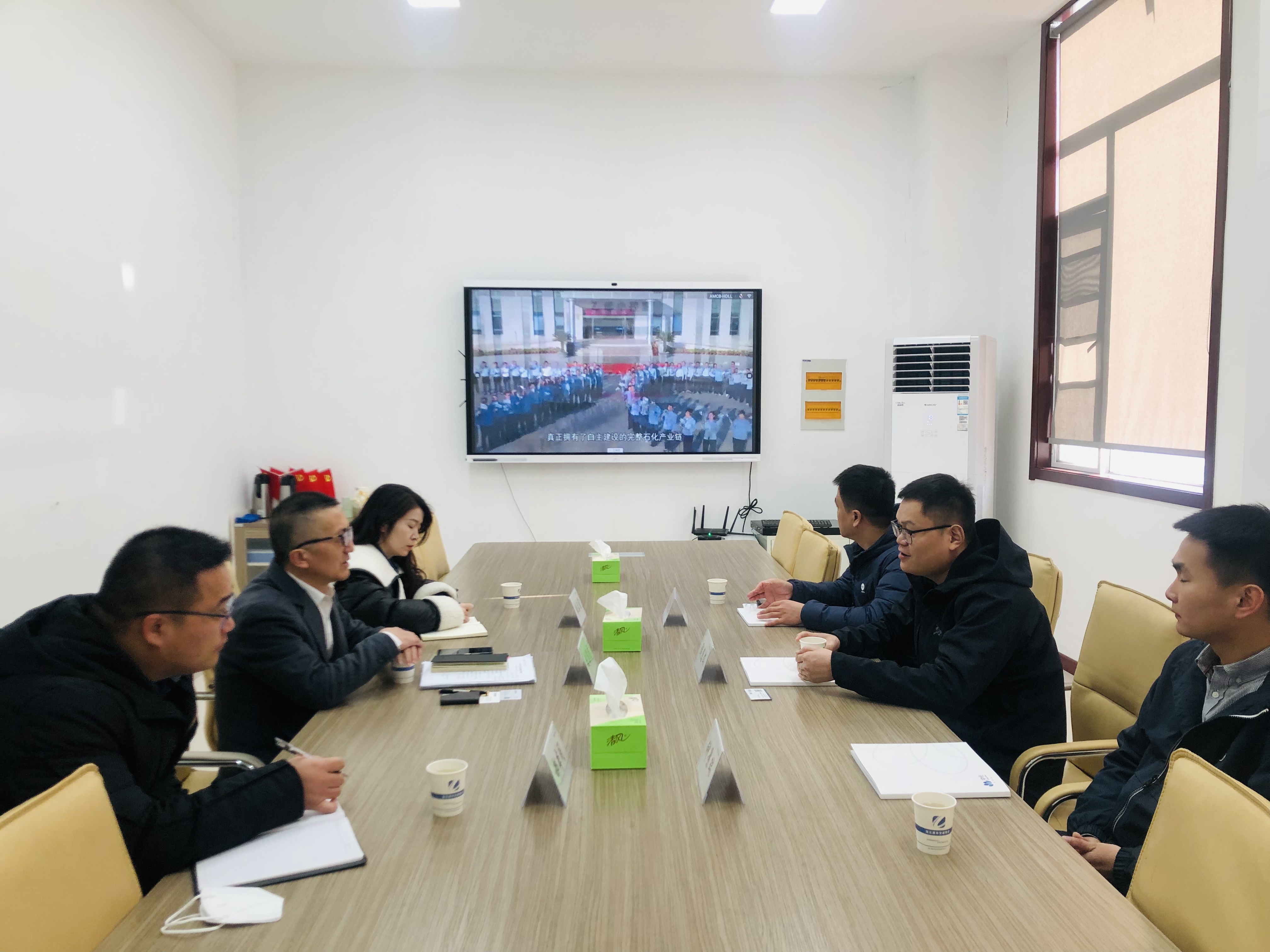 2月14日上午,山东京博石化中部大区总经理陶惠文一行3人到中化交控能源千亿官方网页版交流洽谈,中化交控能源千亿官方网页版总经理刘苏龙携业务团队接洽。