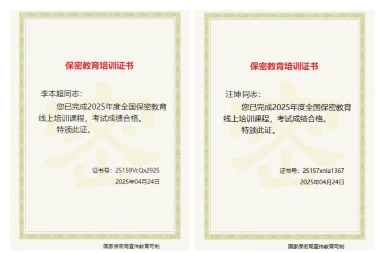 活动期间,全体干部职工积极响应千亿官方网页版的安排部署,落实行动,登录注册中国保密在线网站培训系统,迅速掀起了学习保密知识的热潮。党员干部职工充分利用休息时间,学习保密知识,积极参加超过4个学时的线上培训及考试,系统学习保密优良传统、保密法律法规、保密技术防范、保密警示教育等内容,在考试过程中,认真答卷,以优异的成绩通过了考试,并取得了线上颁发的“保密教育培训证书”。