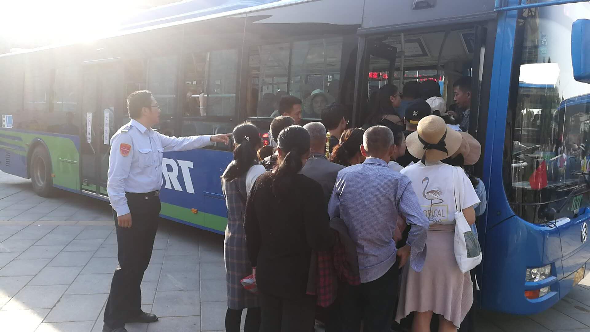 此时,驾驶员师傅们迎来了上班早高峰,总有那么一两个因为各种原因面临迟到的乘客焦急地挤进即将塞满的车厢,在师傅们的耐心指引下,为迟到的乘客空出一席之地。各个岗位上的公交人也在此时就位完毕,为新一天安全护送港城公交乘客提供全方位服务。