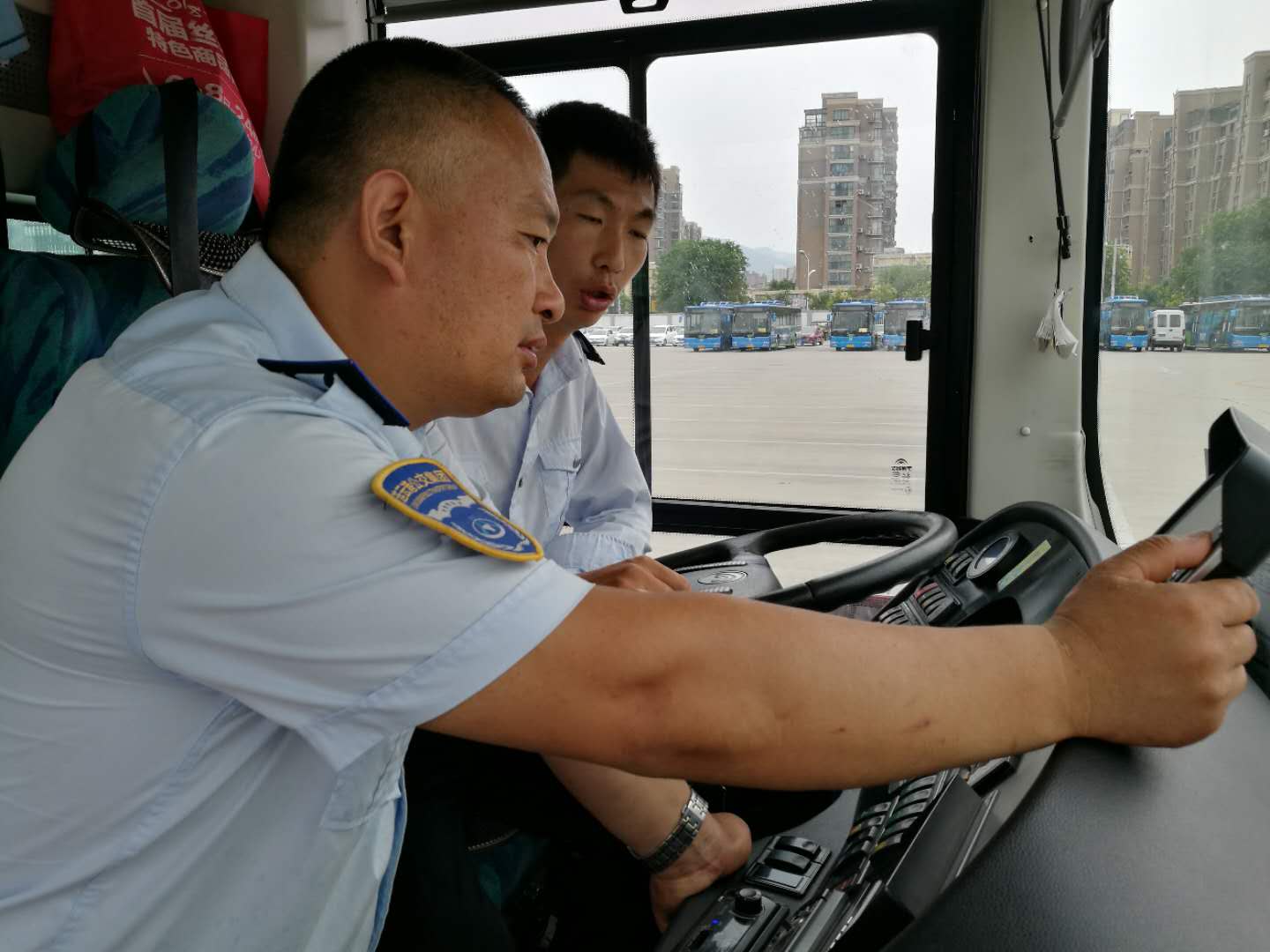 夜晚来临,运营了一天的车辆收班回场了。可是,李辉还在忙碌着,“辉哥,我车上第二排座位靠背坏了,你帮我换一个啊?”“辉哥,我车上的拉手被乘客拽下来了,你帮我装一个啊?”“辉哥,我车上的扶手今天有点松了,你帮我紧紧啊?”“辉哥,我……”这样的话语每天晚上都会有驾驶员说上几遍。“行,你把车停在车位上,先下班回家吧,我把这个装好就去帮你换。”李辉每次都会这样痛快的答应下来。驾驶员下班回家休息了,可是李辉一人在停车场,一忙就忙到半夜。