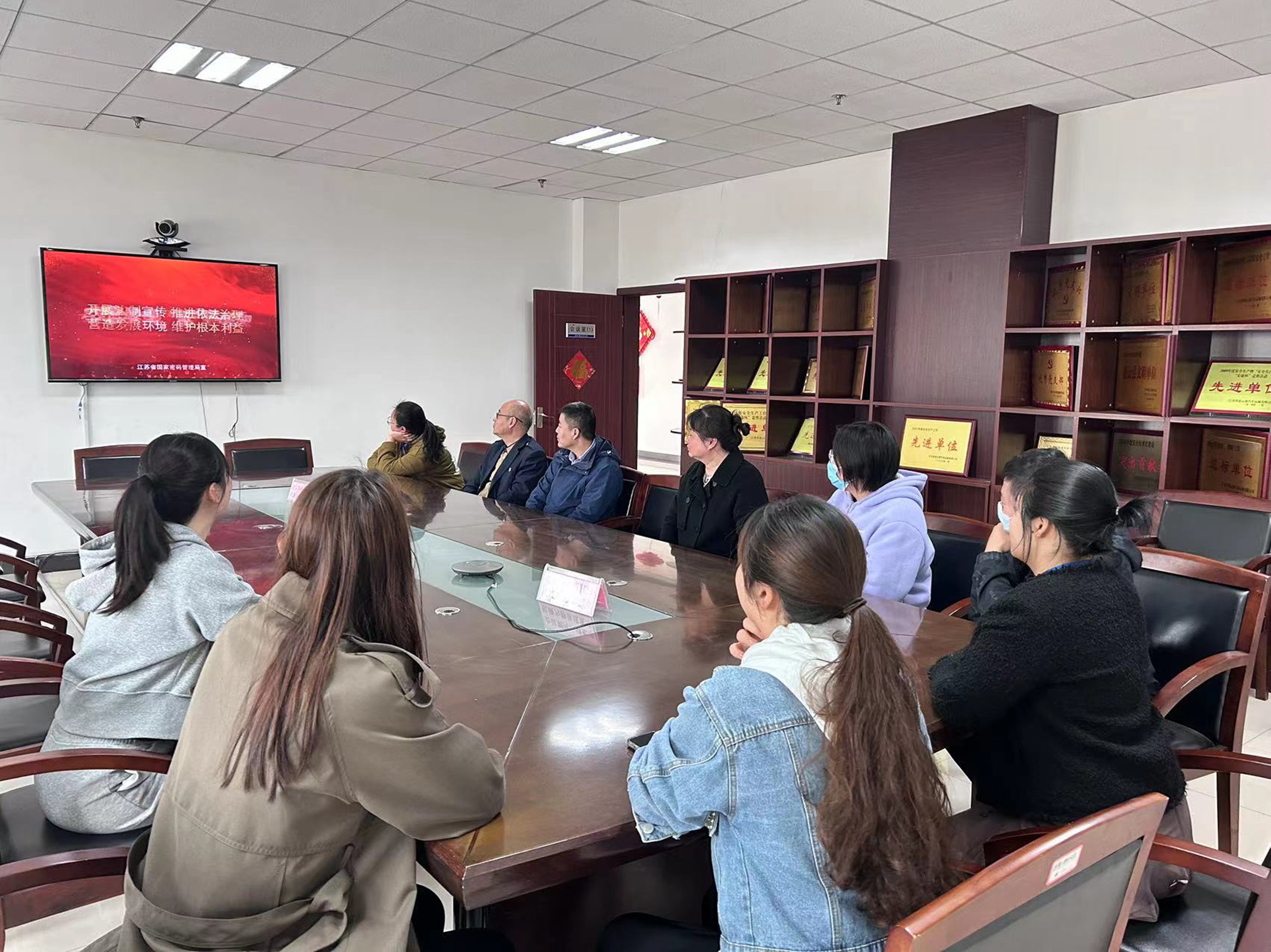 在灌云千亿官方网页版三楼会议室,安机科组织职工通过电视认真观看国家安全音像教育片,还对《密码法》等国家安全相关法律法规知识进行学习,让全体干部职工在教育活动中普遍掌握国家安全知识,筑牢维护国家安全密码防线,提升国家安全意识,自觉维护国家安全。灌云千亿官方网页版还组织在车站站场内栅栏张贴“全民国家安全教育日”宣传标语内容,通过宣传引导,更进一步提高广大职工政治敏锐性、时政严峻性、工作重要性的认识程度,让“国家安全高于一切”的思想植根于职工脑海,时时处处不忘国家安全。