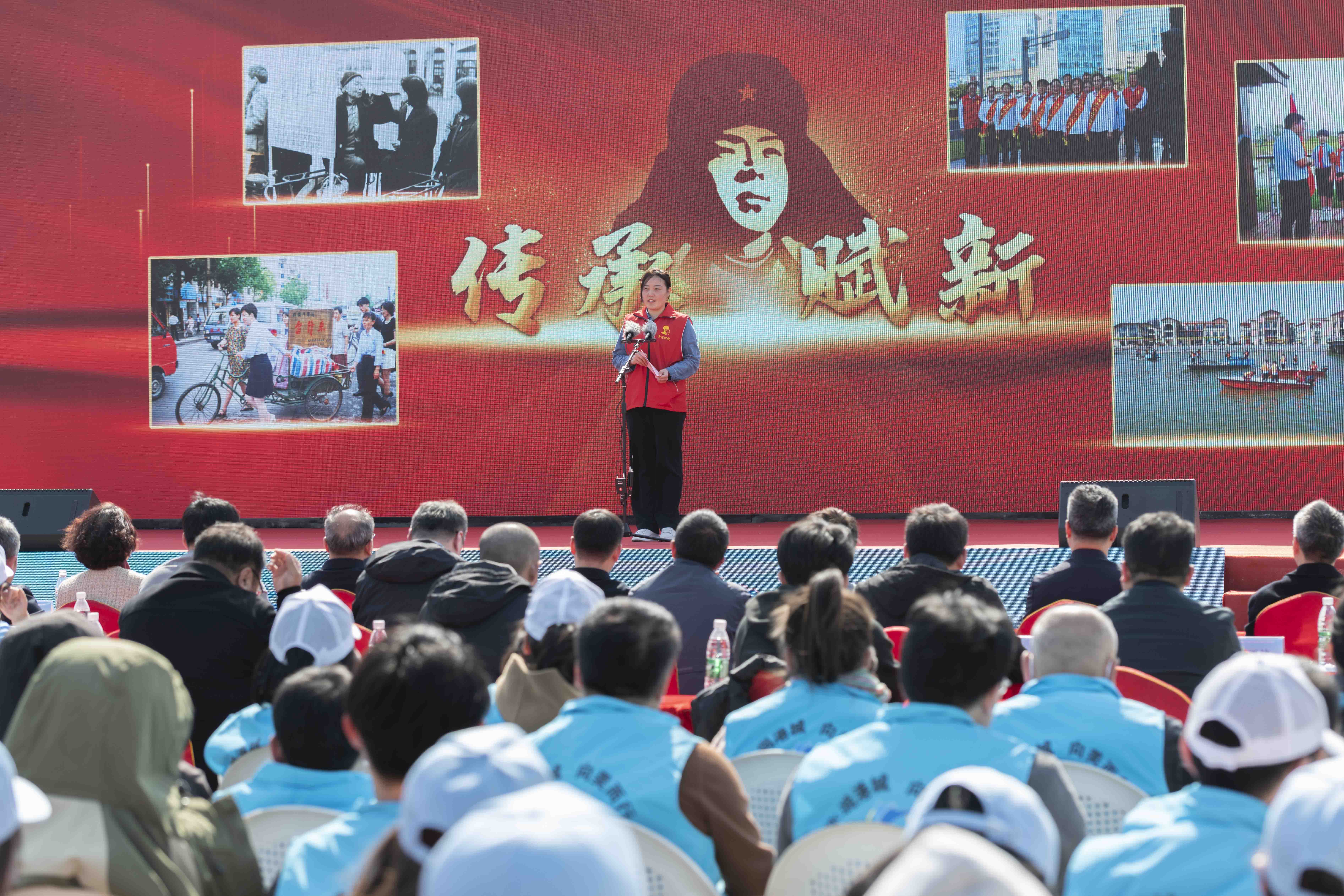 3月21日,在连云区“在海一方”公园举行的2025年度连云港市“与雷锋车同行 携手净滩巡河”启动仪式上,全国人大代表、连汽新浦汽车总站副站长,“雷锋车”组代表于丽婕作为志愿者发言。她结合“雷锋车”组62年服务成果,向现场志愿者们发出“守护海洋生态”倡议,将传统扁担精神与生态文明建设深度融合。