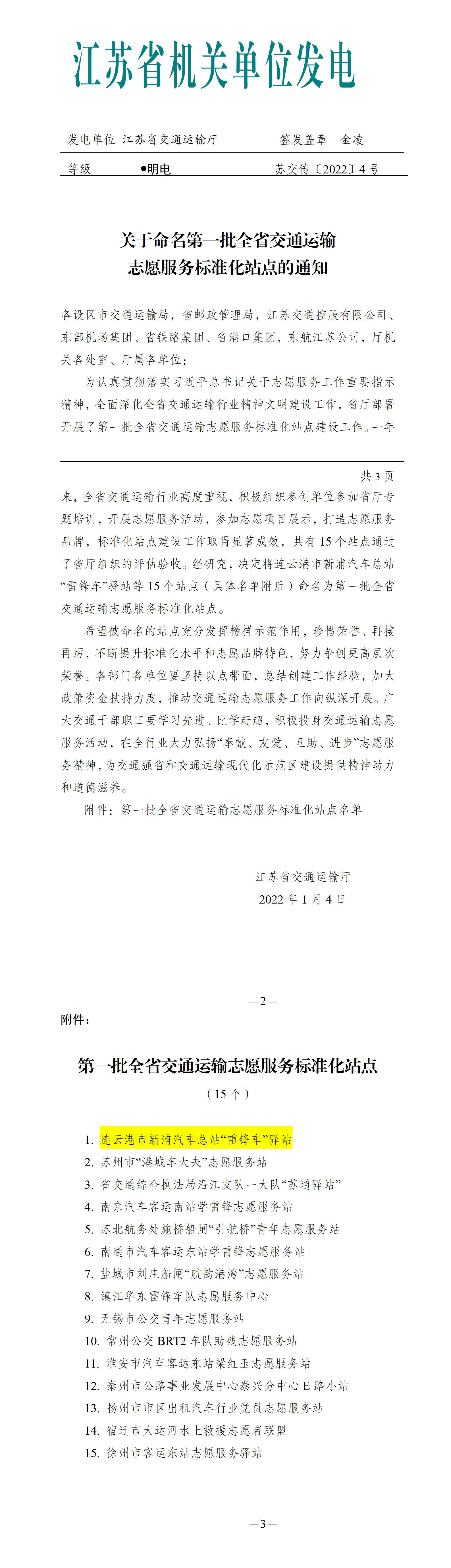近日,从省交通运输厅传来喜讯,连云港市新浦汽车总站“雷锋车”驿站成为连云港唯一入选江苏省“第一批交通运输志愿服务标准化”站点。
