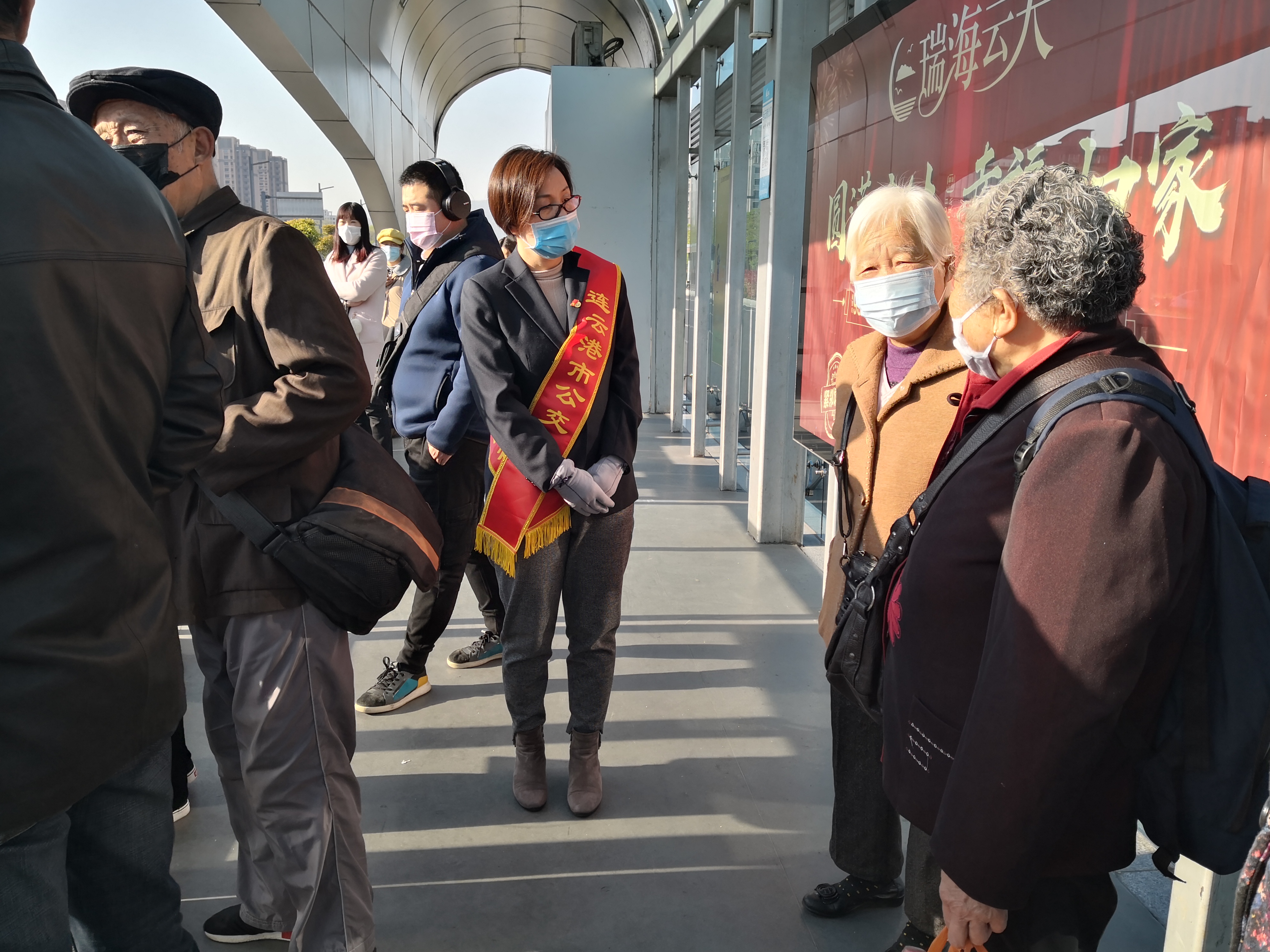 同时,快速公交党支部结合港城创文实际及安全生产工作,组织“文明交通”志愿服务活动。志愿者们以两人为一组,统一穿着志愿者马甲及“文明公交,绿色出行”绶带,深入客流较大的8个站台,在出行早高峰期及时劝阻乘客不文明现象,引导乘客先下后上,有序乘车,并对驾驶员着装规范、路口减速等进行重点检查。活动中志愿者们热情服务,倡导督促乘客文明乘车,耐心解答乘客疑问,并积极宣传本市创文要求,营造了良好的文明乘车氛围。