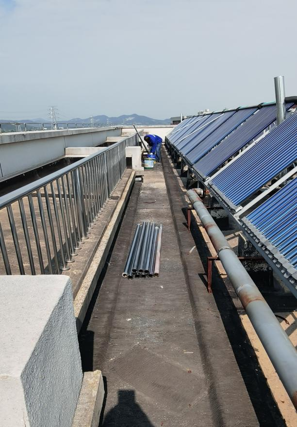 2023年8月下旬,明茂权属港嘉千亿官方网页版启动江苏科技大学太阳能热水系统的维护保养工作。工作包括太阳能集热器真空管损坏和氧化膜脱落的更换、真空管污染的部位的清洗、采用垫片更换处理设备连接处的渗漏点等。经过维护保养后即可提高集热器的水质量和热水的效率,同时又能减少资源浪费,达到最佳能效。