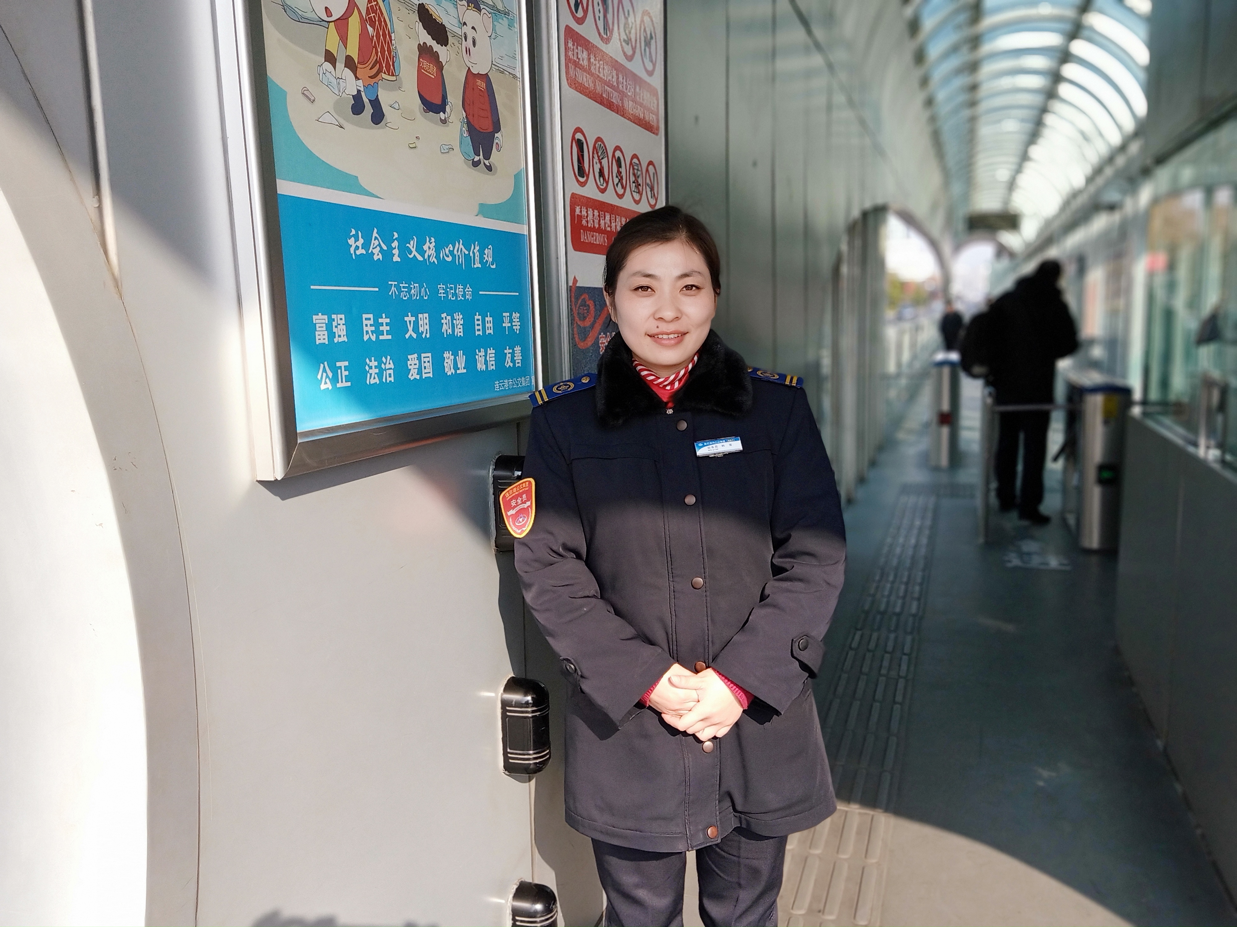 有一次当班时,我看见一对老夫妻在站台里看路牌,我主动上前询问他们要去哪个方向,我让他们不要着急,我帮他们看看,来了车我会告诉他们的。几句简单的话语就换来了一份真挚的感谢,我觉得我的付出有了回报,我的工作有了价值,就算有了委屈,就算身心都很疲惫,但是我很快乐。