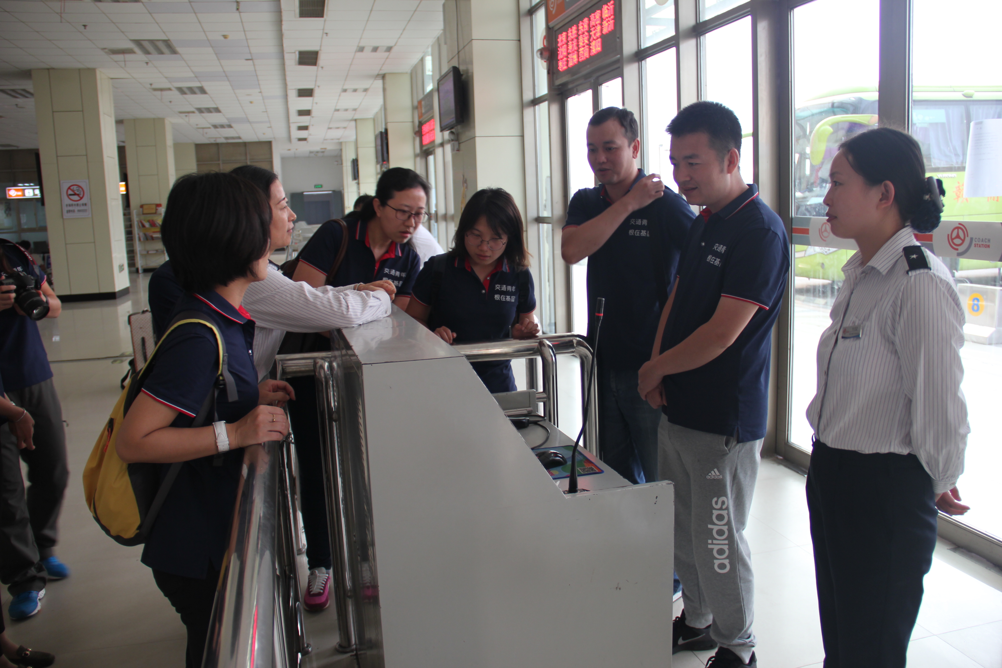9月22日,由交通部直属机关青年干部20余人组成的参观调研团来到新浦汽车总站调研参观“雷锋车”组。江苏省交通运输厅副调研员钱京江、市交通局副局长蔺宁君、汽车运输有限千亿官方网页版董事长李树军、汽车运输有限千亿官方网页版党委书记周文君及相关领导参加调研。