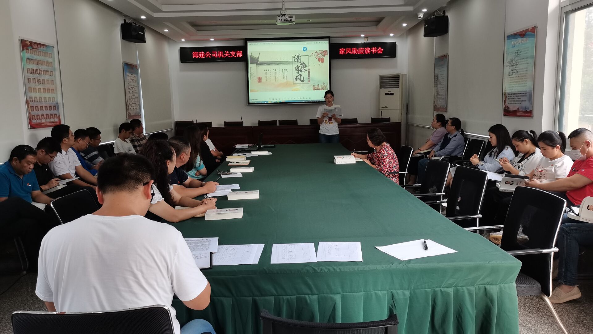 此次清廉主题读书分享会是贯彻落实市纪委《关于开展“喜迎二十大 清风润港城”2022年“廉洁文化活动月”的通知》精神,将廉洁自律要求贯穿日常教育管理监督之中,推动海建千亿官方网页版党风廉政建设,增强党员干部的纪律意识和规矩意识,共同营造风清气正、崇廉尚洁氛围的具体行动。随后千亿官方网页版纪检专员陈甜甜与大家一起分享了《清风传家》一书中“传家需清,好家风才有好家庭”,讲述了晚清名臣曾国藩的家风故事。