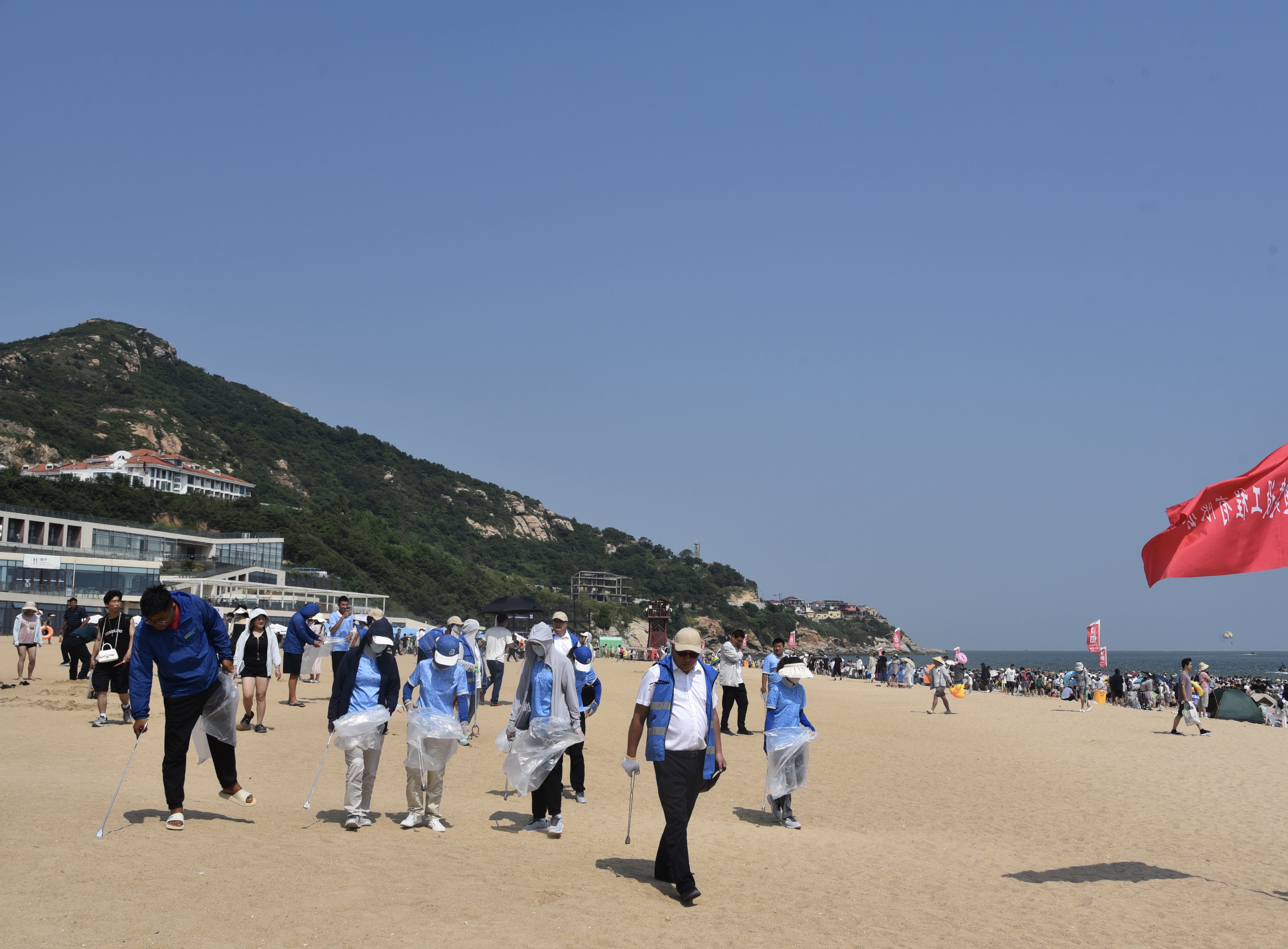 活动中,党员志愿者们拿着垃圾袋、钳子等用具,沿着海边有条不紊的捡拾着垃圾,大家分工合作,经过1个多小时的奋战,景区“视觉污染”得到有效改观。闷热难耐的天气里,志愿者们身体力行,用实际行动践行党员的先锋模范和带头引领作用,这一抹“海建蓝”,也成为了景区一道靓丽风景线,感染着游客们自觉遵守景区规定,做到文明出游。
