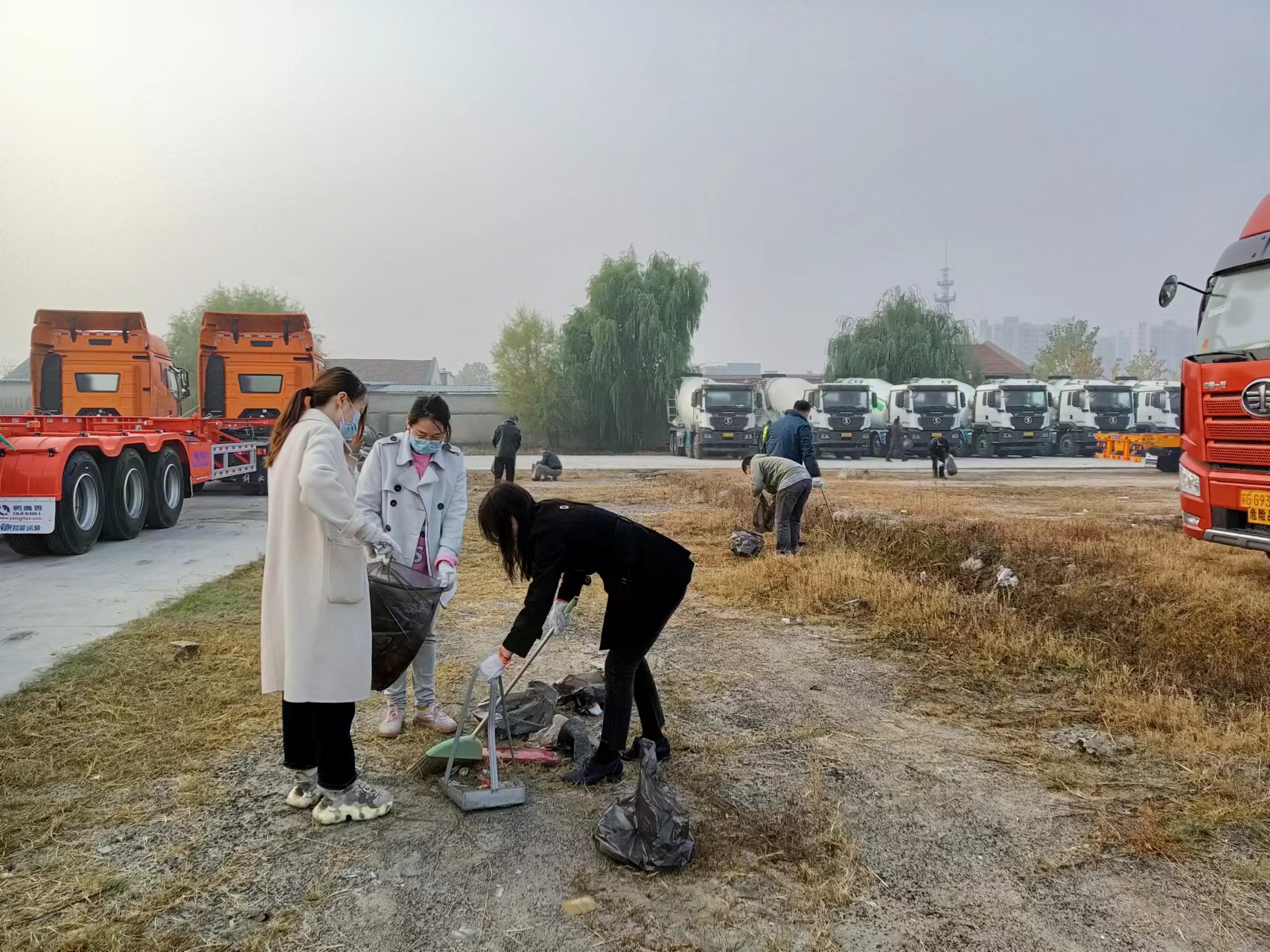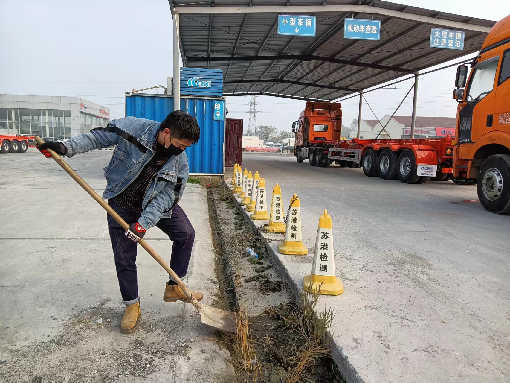 全体员工拿起扫帚、簸箕等各种工具,带着手套,弯下腰,从检测事业部后方场地到修理厂门前,清理垃圾杂草,清理沟渠、捡拾白色垃圾,大家分工合作一点一点将平日里打扫不到的卫生死角清理干净。大家团结协作、共同挥洒汗水,齐心协力忙了一个小时后,原本杂乱的场地变得干净整洁。紧接着各自回到自己的工作岗位,投入到一天的工作之中。