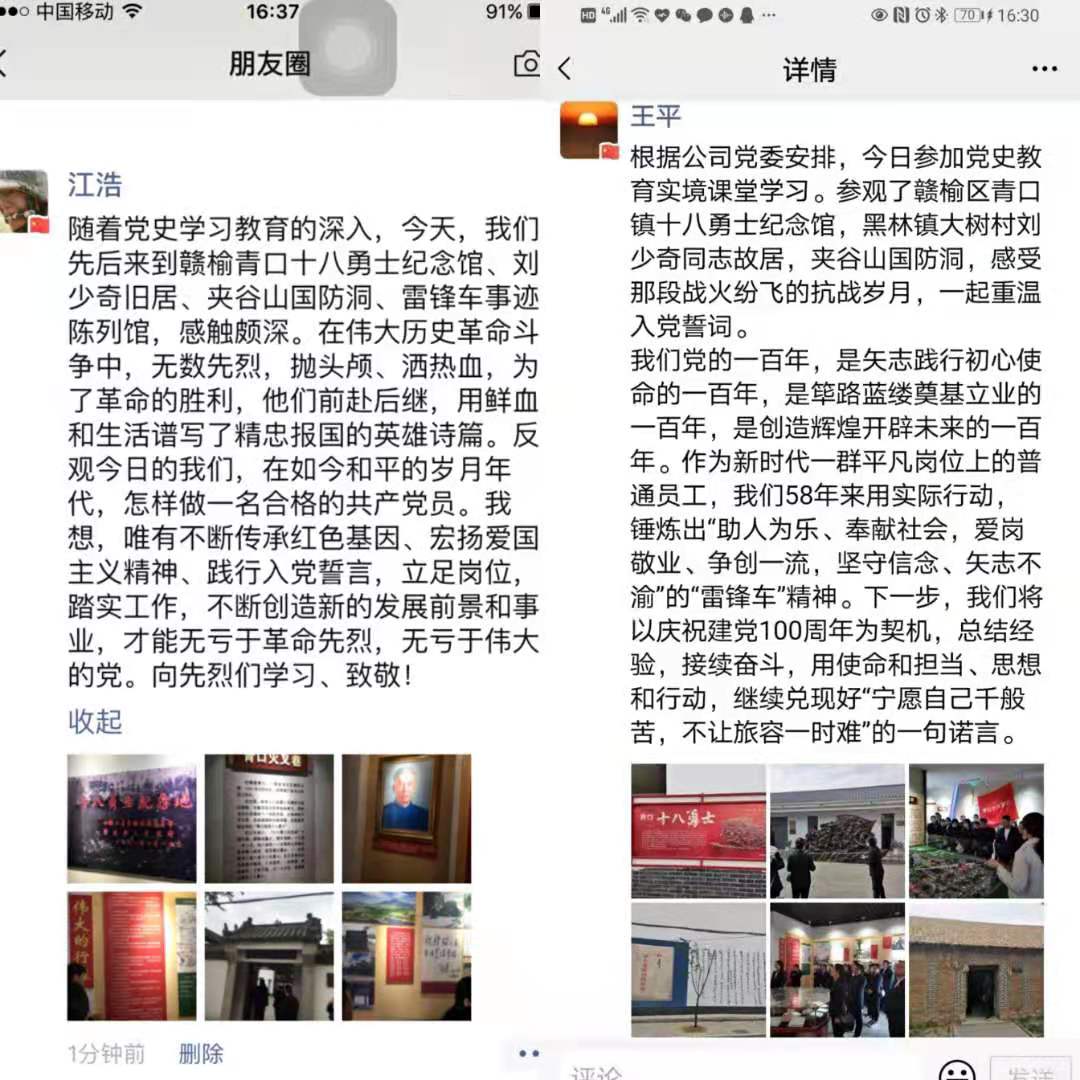 活动结束后,党员们在微信平台分享了党史学习微感悟。大家纷纷表示,作为一名共产党员,我们要对照学史明理、学史增信、学史崇德、学史力行的要求,向十八勇士等革命先烈学习,继承革命优良传统,集聚精神力量,守初心担使命抓落实,以更加昂扬的精神状态,过硬的工作作风,投入到千亿官方网页版的高质发展中来。
