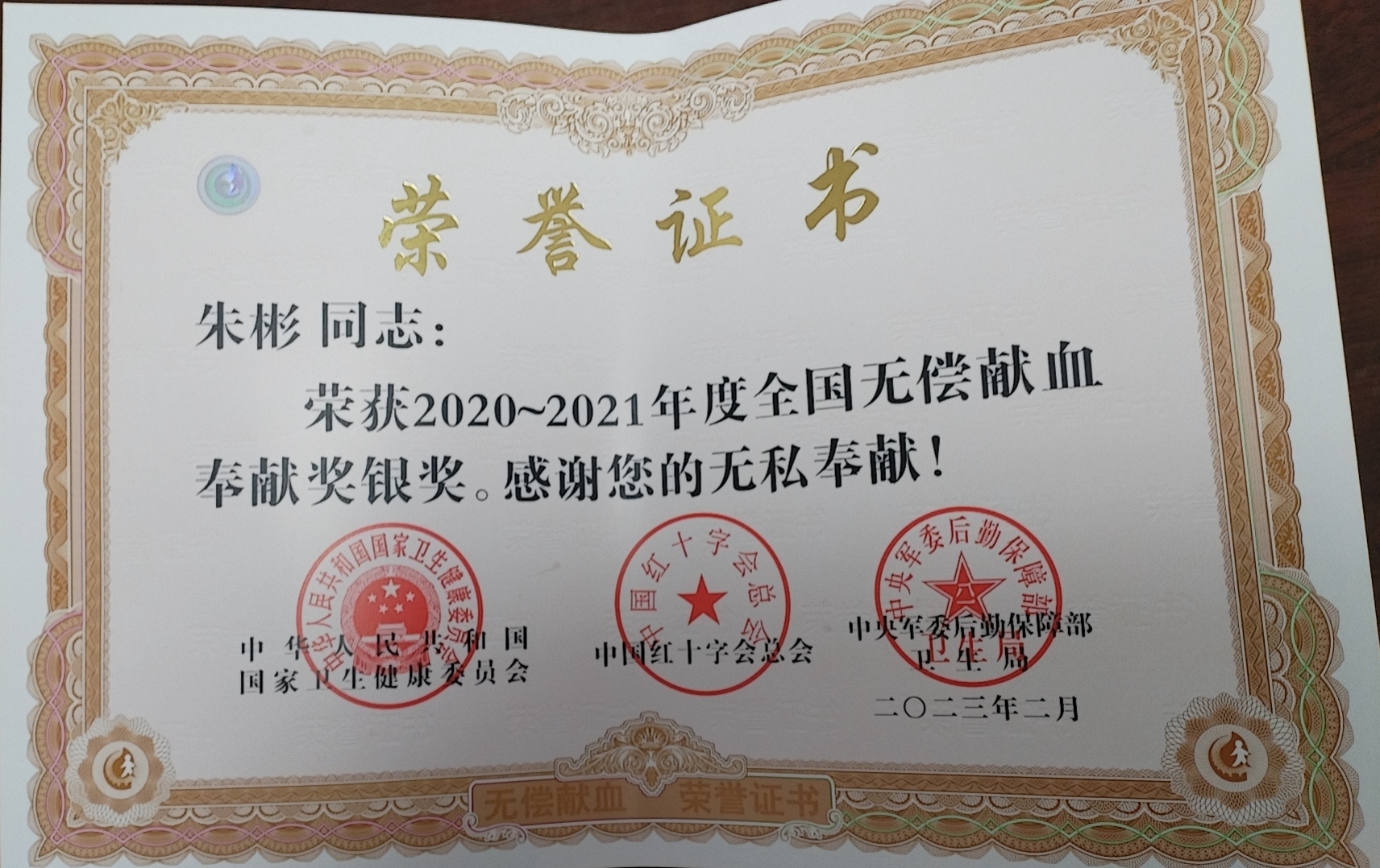 近日,国家卫健委、中国红十字会总会、中央军委后勤保障部卫生局联合下发《关于表彰2020-2021年度全国无偿献血表彰奖励获奖者的决定》文件,对2020-2021年度在无偿献血工作中作出突出成绩的省(市)、集体和个人进行表彰。连汽修理千亿官方网页版副经理朱彬因突出贡献,荣获由国家卫生健康委颁发的“全国无偿献血奉献银奖”。