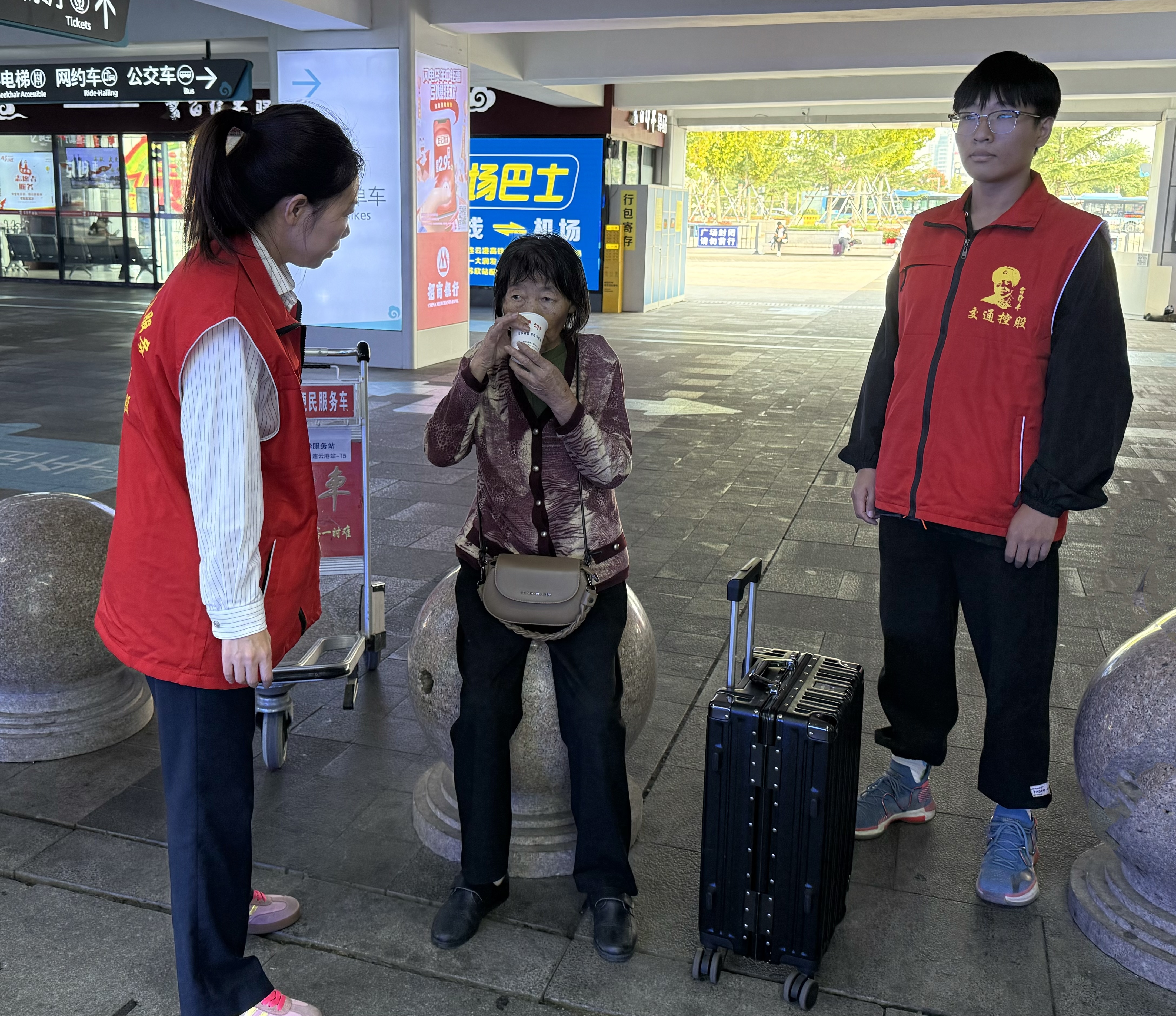 当天,老人姐妹俩抵达连云港高铁站后,因旅途劳顿,姐姐的身体状况愈发虚弱,手不停地发抖。这一幕恰好被正在做志愿服务的“雷锋车”手和志愿者们看到。他们迅速上前询问情况,并立即为老人提供了热水,以缓解她的不适。