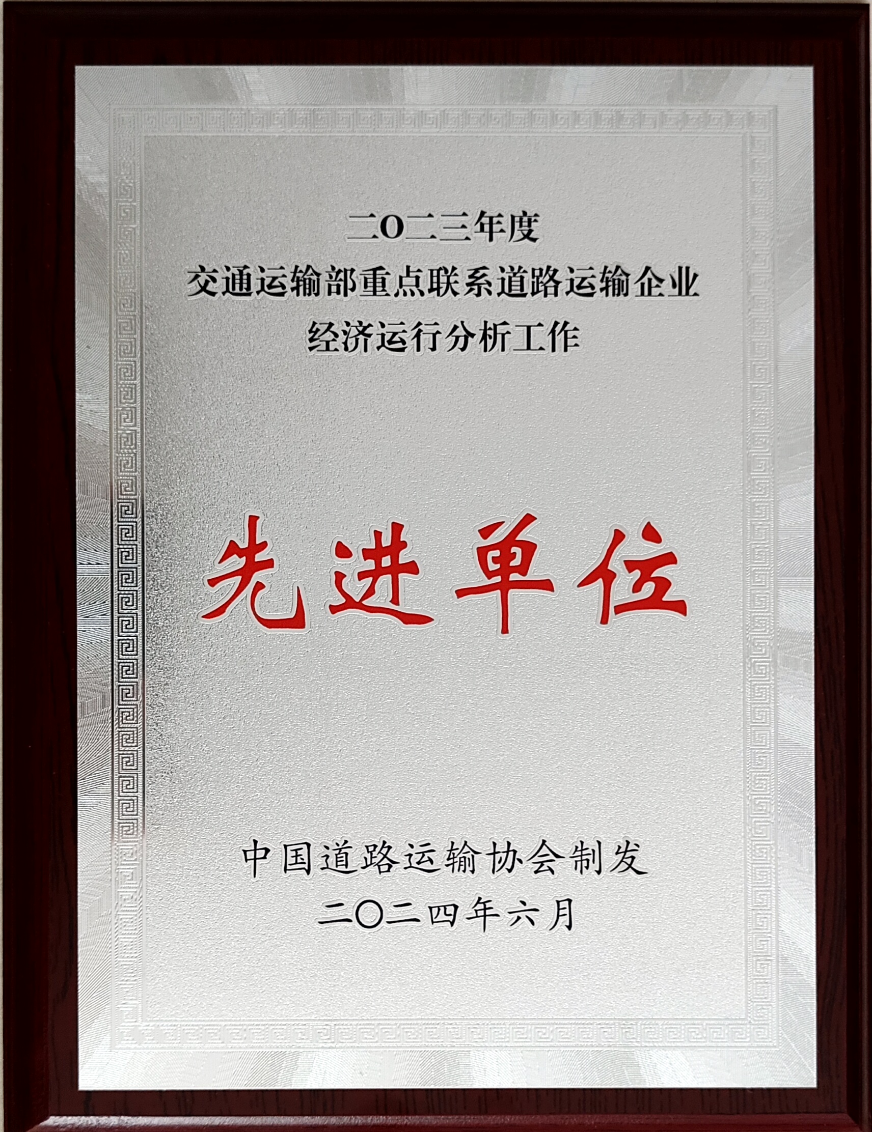 汽车千亿官方网页版获评“2023年度交通运输部重点联系道路运输企业经济运行分析工作先进单位”,张浩同志获评“2023年度交通运输部重点联系道路运输企业经济运行分析工作优秀统计人员”。