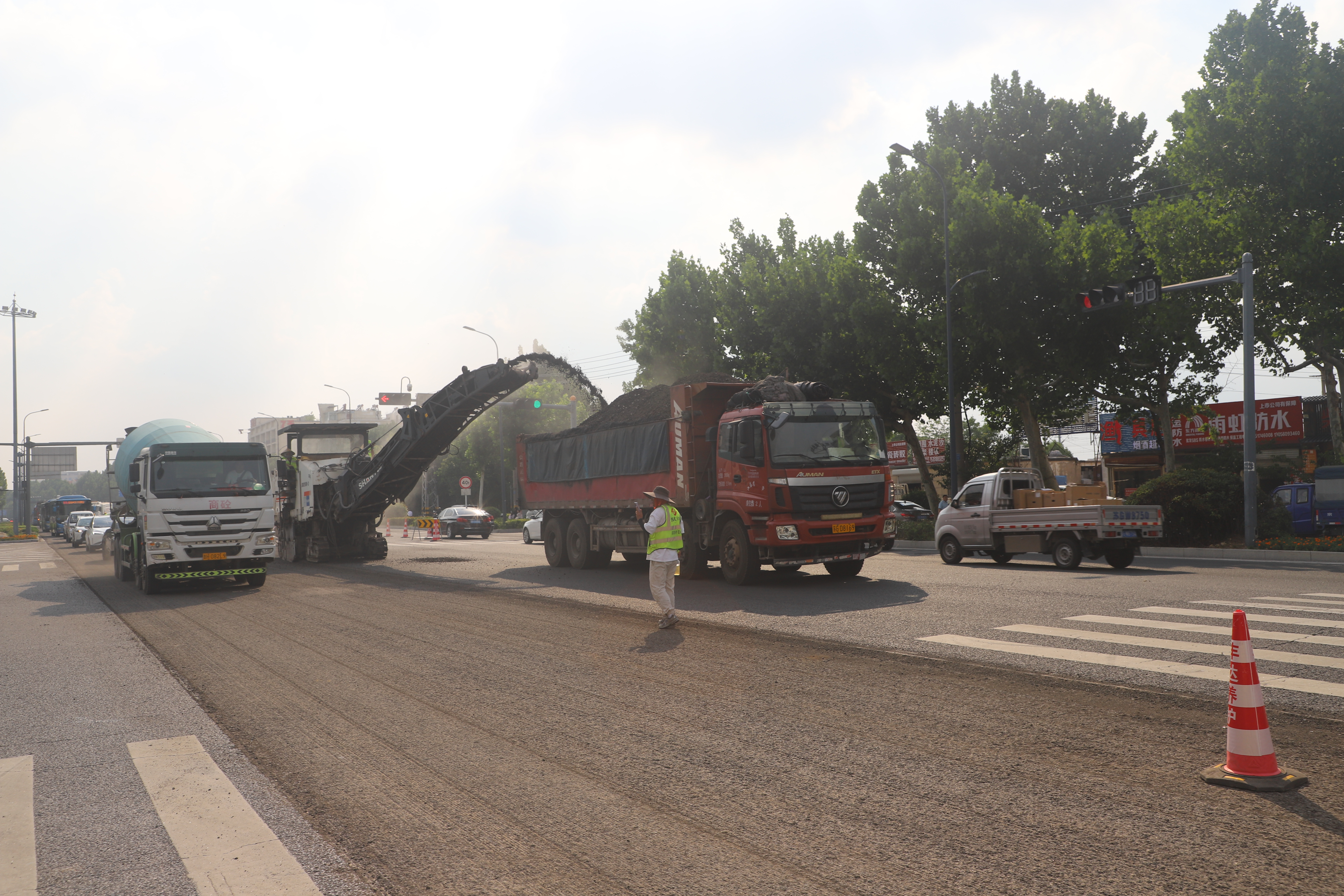 人民路外围车流量大,重型车辆较多,路面沉降、龟裂、车辙等病害较为严重,行车舒适性较差,且不能全封闭施工。为加快施工进度,避免高峰路段拥堵,项目部人员不畏高温酷暑,攻坚克难,采取降尘除尘、分段施工、基坑防护等多项措施错峰施工,克服噪音扰民等诸多困难,做好全线文明施工工作,共投入机械设备18余台次,人员30余人,历经八昼夜的加紧施工,共修补摊铺路面56336.7平方米。