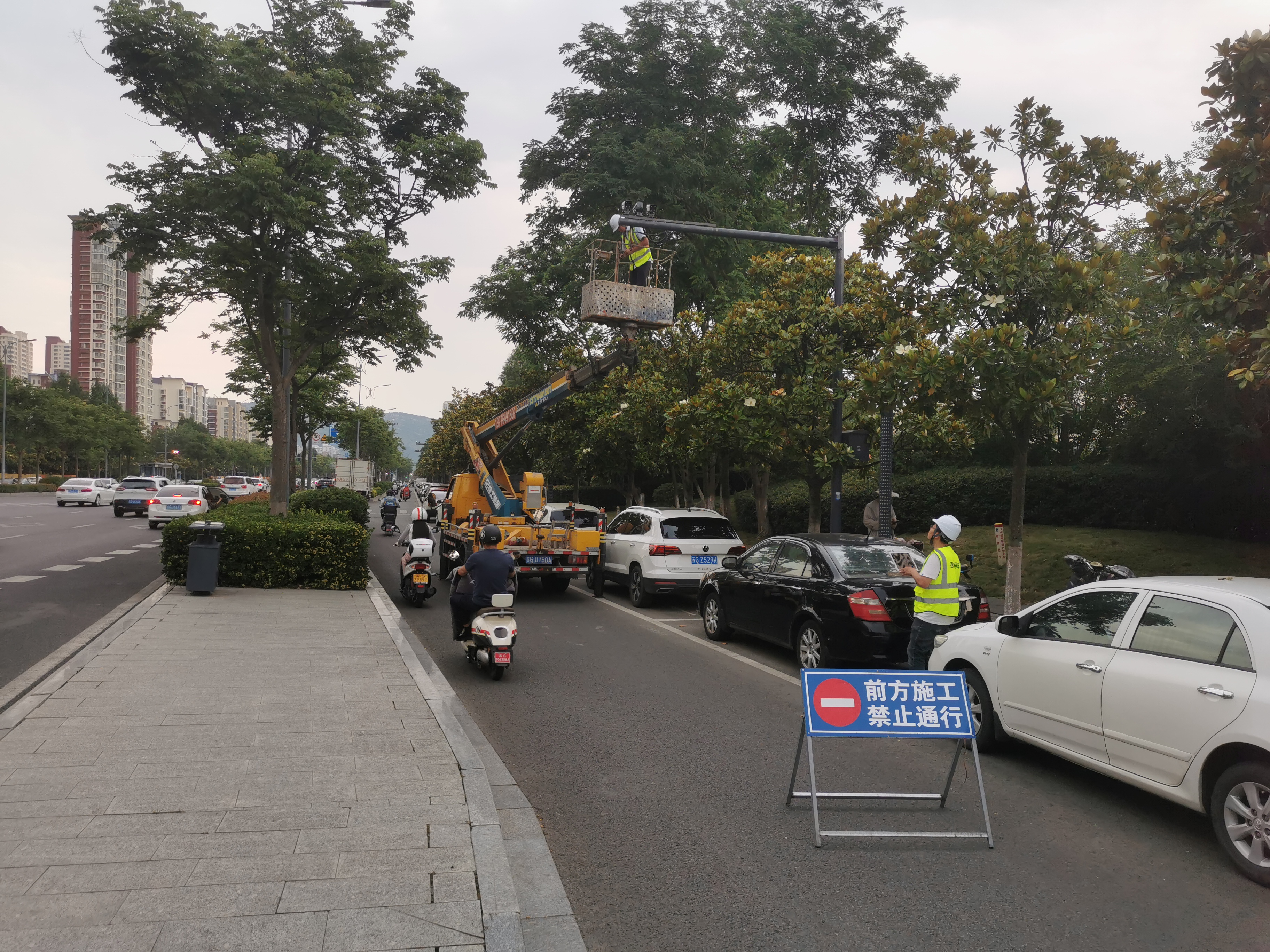 6月12日、13日,千亿官方网页版设备巡检员、安全员协同施工单位吊装车前往海宁东路、科苑路、东盐河路、朝阳路、东苑巷、郁洲路等路段,调试解决高位视频设备偏移、杂物附着、线路松动等异常状况,现场同步测试智慧停车平台在调试后能否清晰、准确地采集车辆信息,确保各路段泊位设备稳定运行。