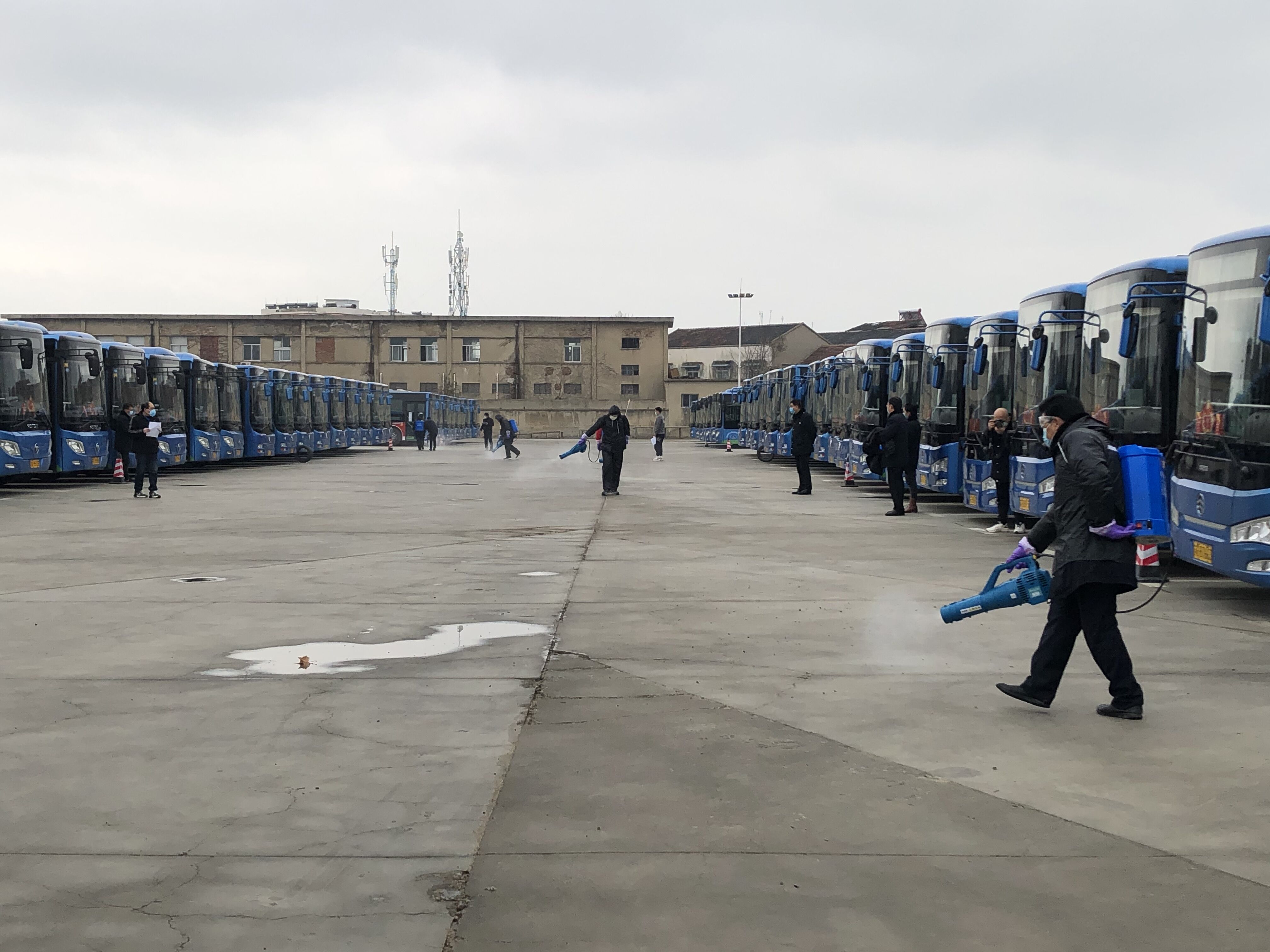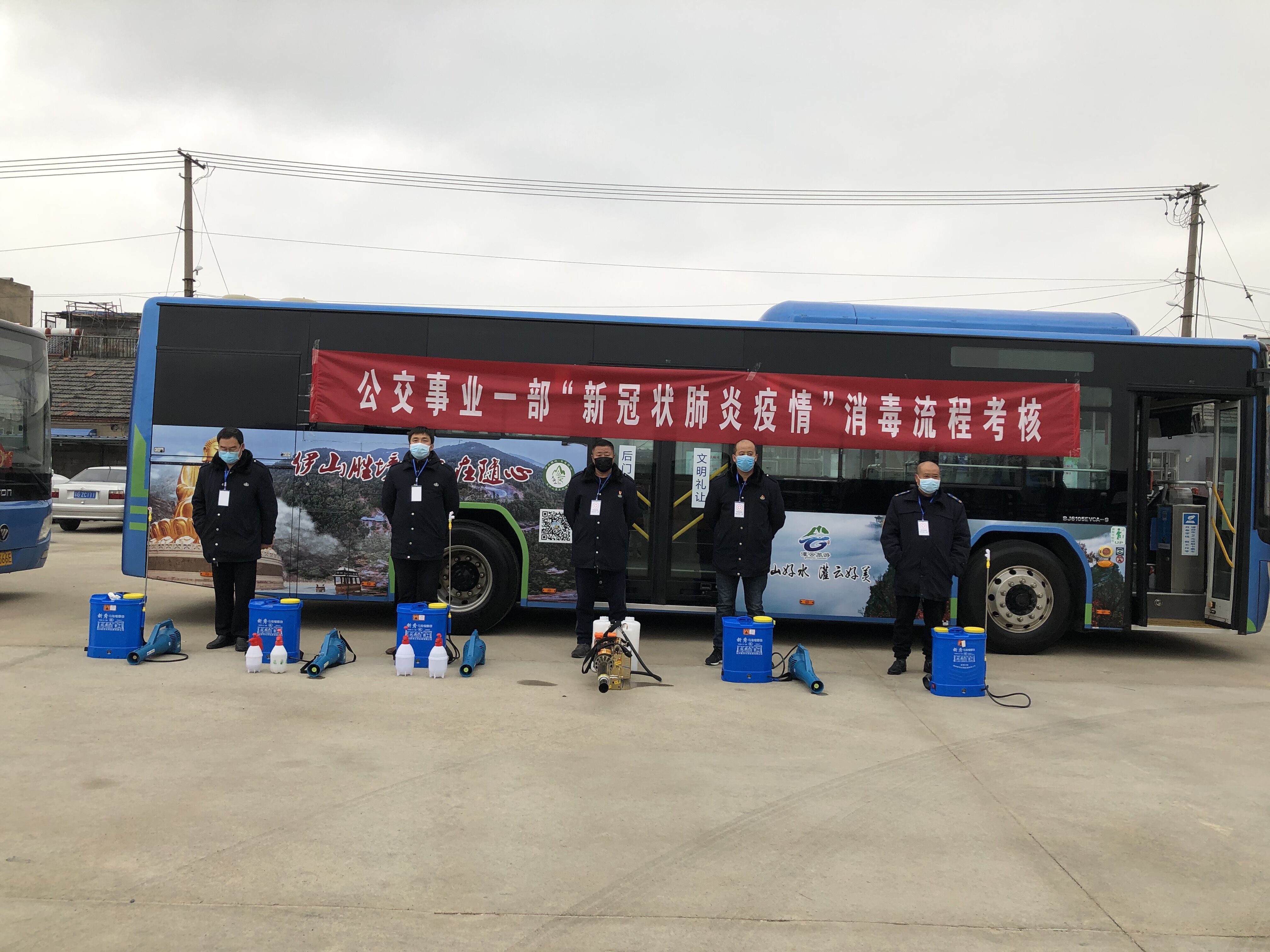 为了进一步做好“新型冠状病毒肺炎疫情”的防控工作,提高事业一部消毒人员的消毒水平,2020年2月29日下午14点30分,公交千亿(中国)有限千亿官方网页版公交事业一部在植物油厂公交停车场开展“新型冠状病毒肺炎疫情”消毒流程考核竞赛,参加竞赛的人员包括:事业一部领导班子成员、分千亿官方网页版经理、安机经理等人员,公交千亿(中国)有限千亿官方网页版安全保卫部部长于亮应邀观摩了本次活动。所有参加人员佩戴口罩,进入场站首先测量体温,并做好登记。