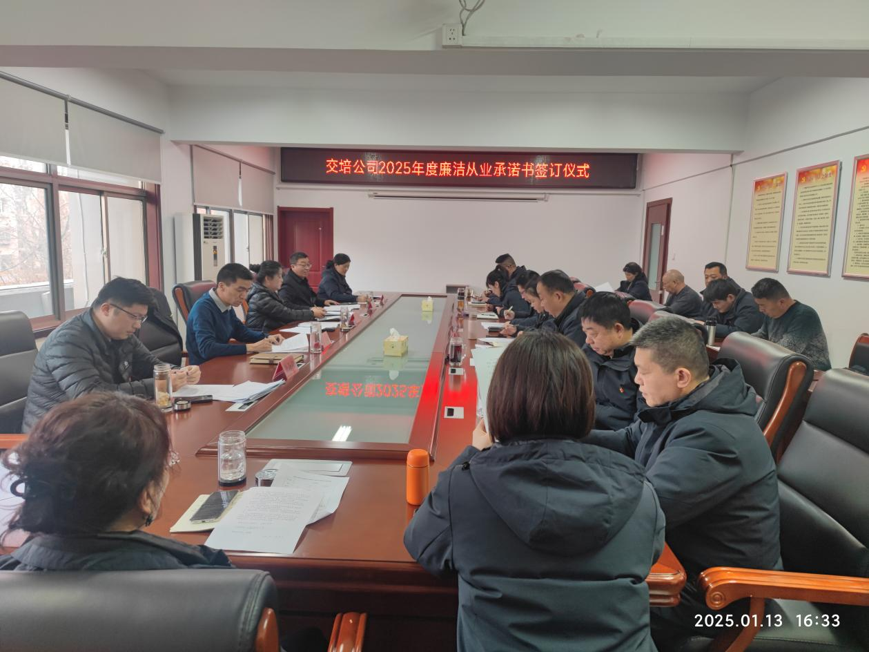 1月13日,交培千亿官方网页版纪委组织领导班子成员、中层干部及关键岗位人员等100余人签订了《廉洁从业承诺书》,进一步筑牢廉洁从业“防火墙”。