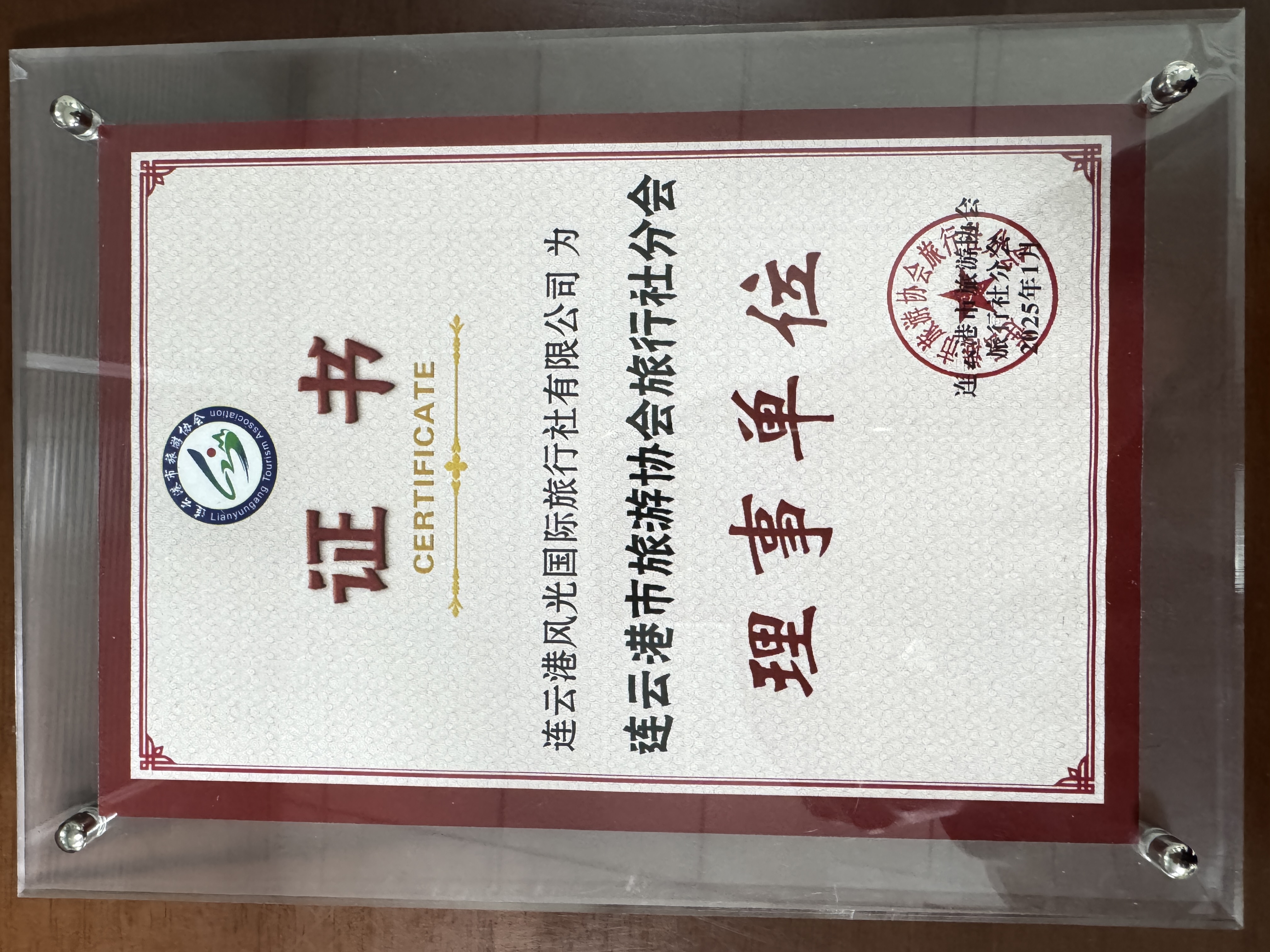 近日,连云港市旅游协会旅行社分会授予连云港风光国际旅行社有限千亿官方网页版理事单位称号。