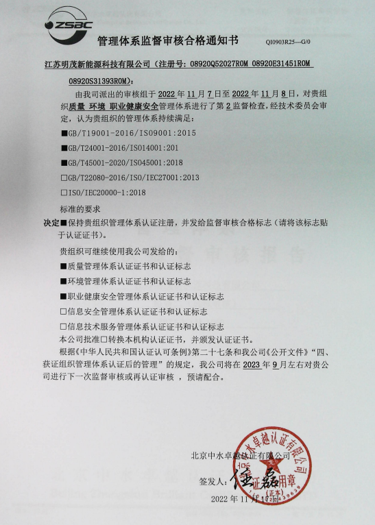 此次审核的顺利通过,是对明茂千亿官方网页版质量体系规范管理的充分肯定,也反映出千亿官方网页版正在以高标准、严要求强化质量体系建设,为千亿官方网页版更好、更快发展奠定良好的基础。
