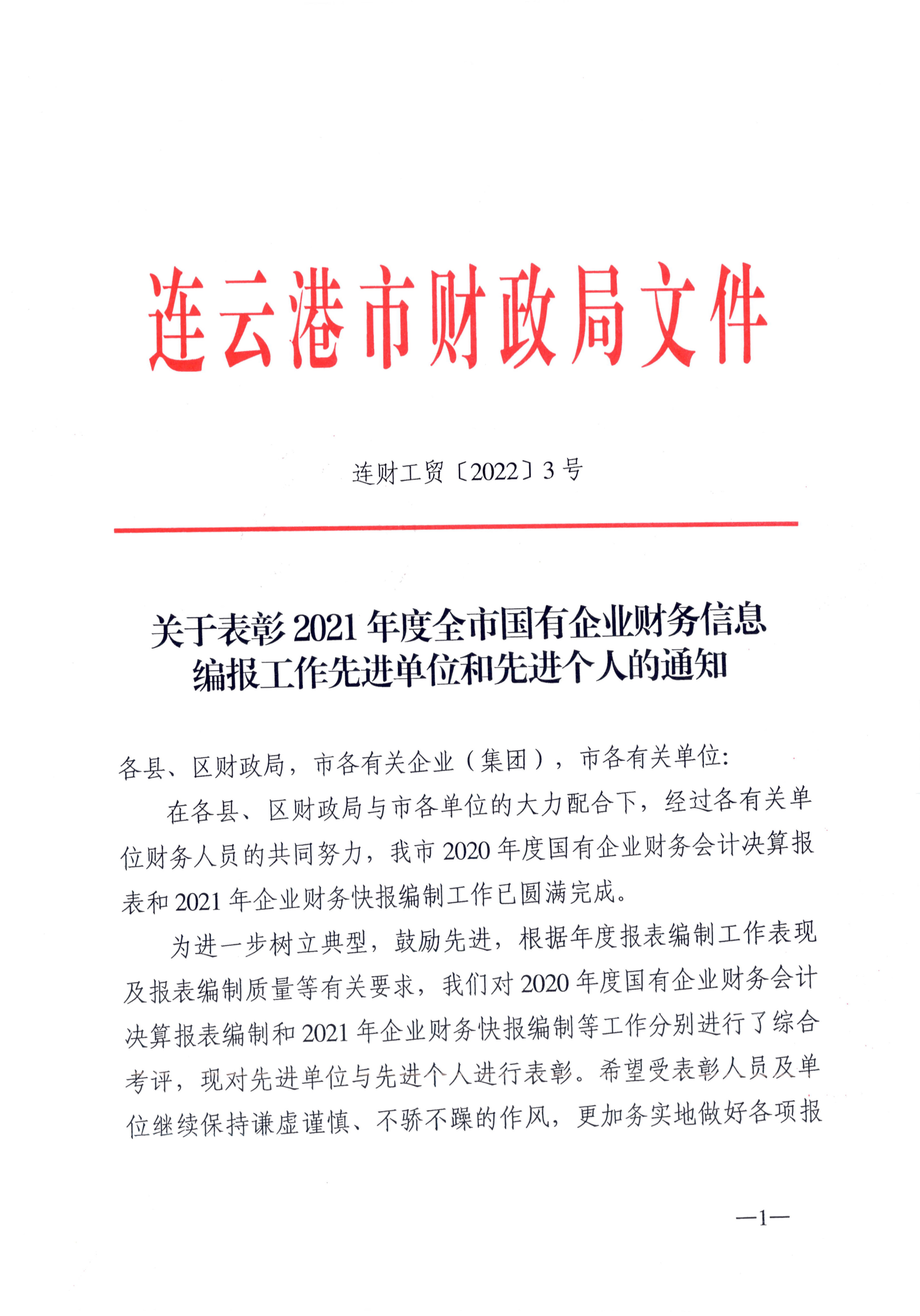 日前,经连云港市财政局下发文件通知,对2021年企业财务快报编制工作综合考评,千亿(中国)有限千亿官方网页版被评为全市财务信息工作先进单位,千亿(中国)有限千亿官方网页版财务融资部聂丹被评为财务信息工作先进个人。