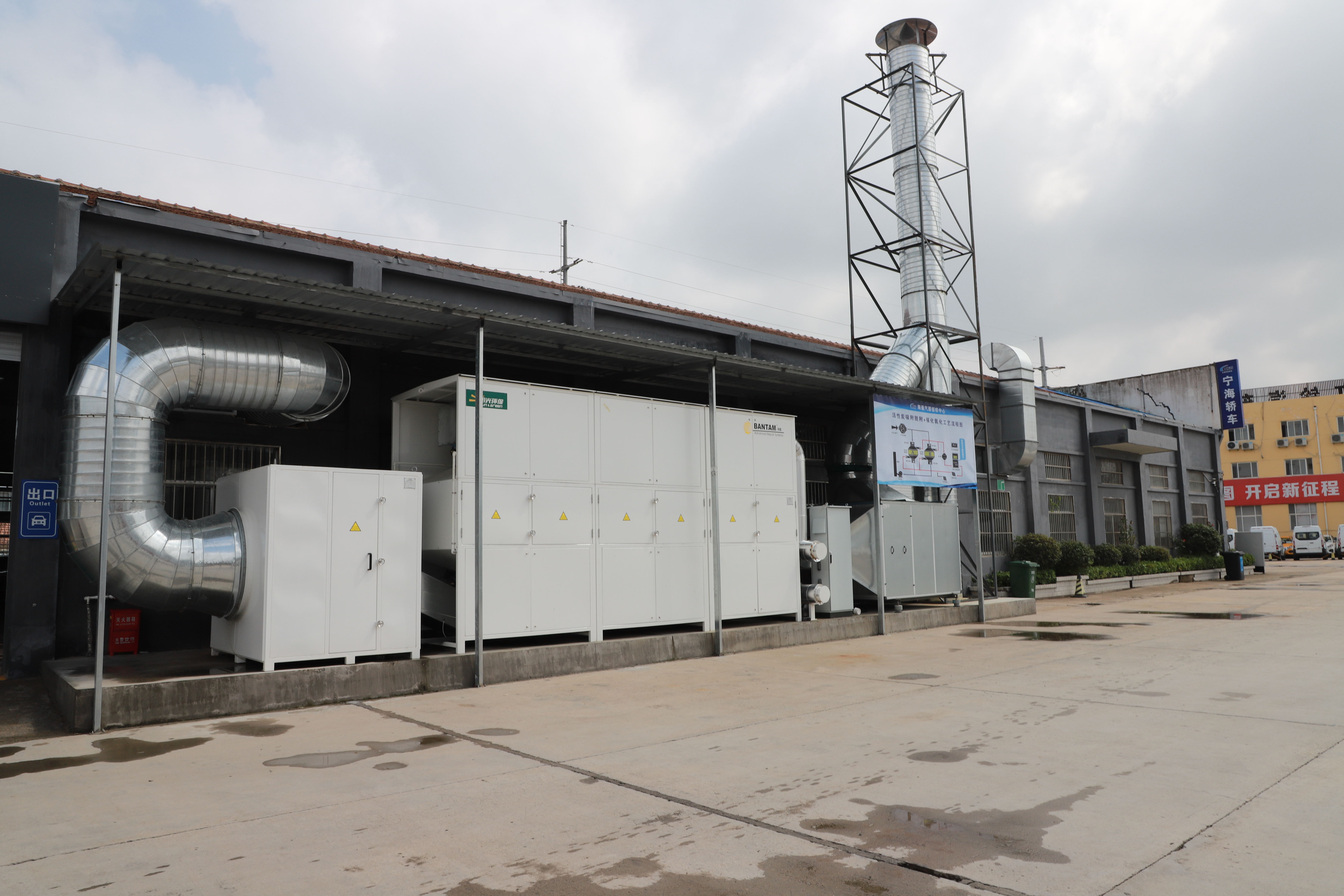 海通汽服千亿官方网页版投入资金100余万元,将原宁海千亿官方网页版汽车修理厂改建成我市首家绿色环保汽车钣喷服务中心,占地面积约1500平米,拥有13个作业工位,设计年产能24000板面,维修车辆可达6000台次。设置2间烤漆房、2间快烤房、3间打磨间,环保设施由清华大学环境学院参与设计安装,建成钣喷“绿岛”。喷烤漆房废气治理采用的活性炭吸附+共享催化氧化的高效处理技术,活性炭饱和后的脱附再生通过“移动脱附车”完成,实现了废气处理设施的可持续运行。对于汽车喷漆、烤漆产生的废气去除效率高于95%,每年可减少挥发性有机物(VOCs)排放量约11.4吨。