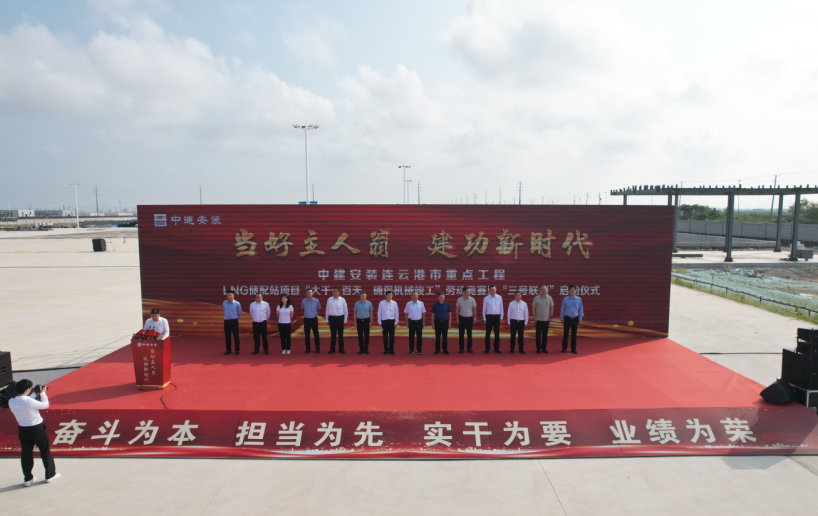 8月15日,连云港市交控物流千亿(中国)有限千亿官方网页版LNG储配站项目成功举办“大干一百天”劳动竞赛启动仪式及LNG储罐外罐安装完成仪式,全面掀起百日大干热潮。江苏省建设工会主任齐朝辉、副主任佘玉龙,连云港市委机关工委调研员方志祥,市交通控股千亿(中国)有限千亿官方网页版总会计师、市交控物流千亿(中国)有限千亿官方网页版董事长张广兵,市交控物流千亿(中国)有限千亿官方网页版副总经理、工会主席刘超,中建安装千亿(中国)有限千亿官方网页版副总经理刘文建,中建安装石化工程千亿官方网页版党委书记、执行董事叶茂扬出席活动。
