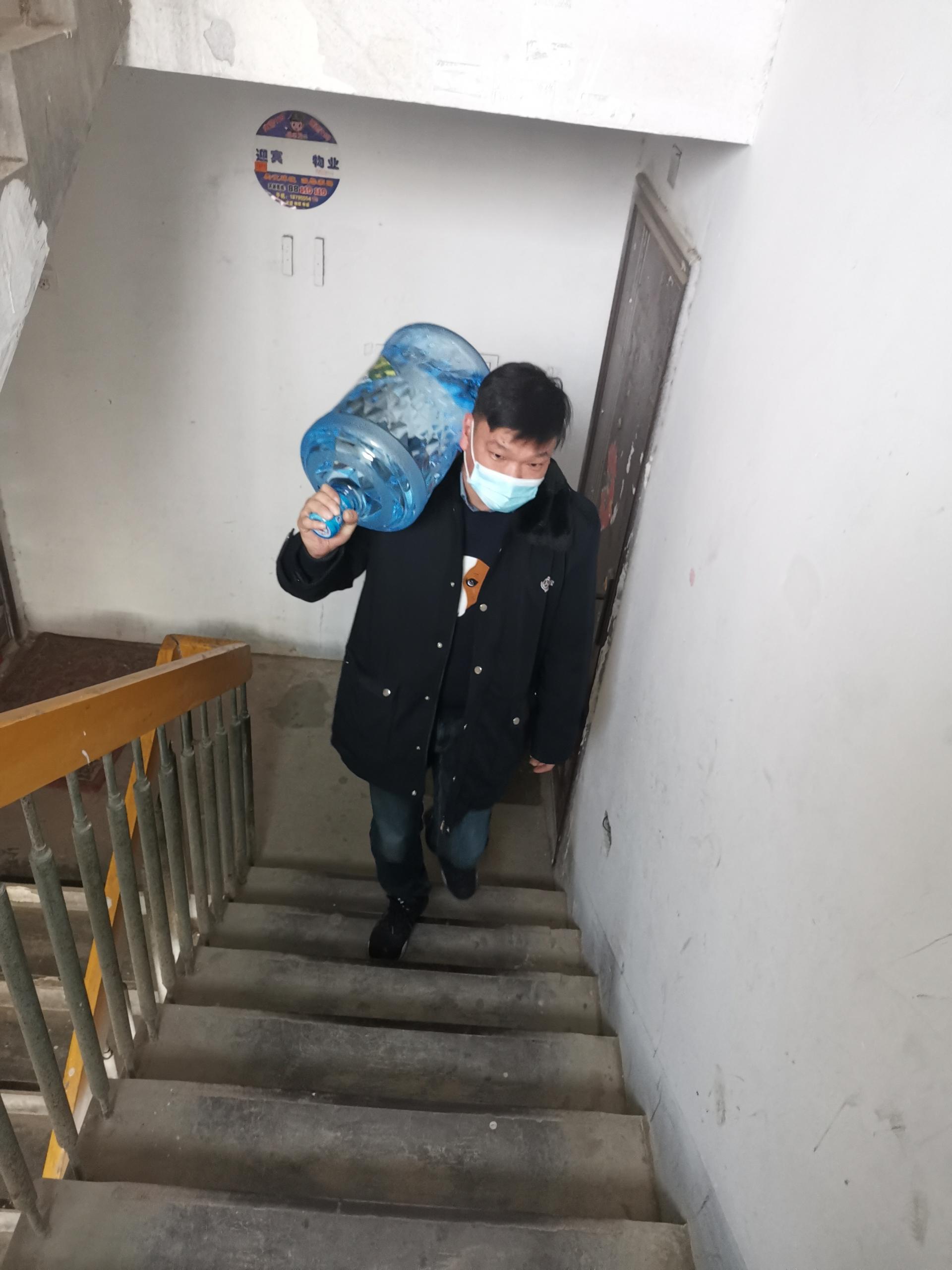 “我们这是服务行业,不能让客户等久了。”有的客户没有电梯,就需要扛上水爬楼,三四楼甚至六七楼了,水多的还要来回爬,算下来要爬上千个台阶。送完之后,浑身是汗,但依然要冲进刺骨的寒风中,将水及时的送到下个客户手中。