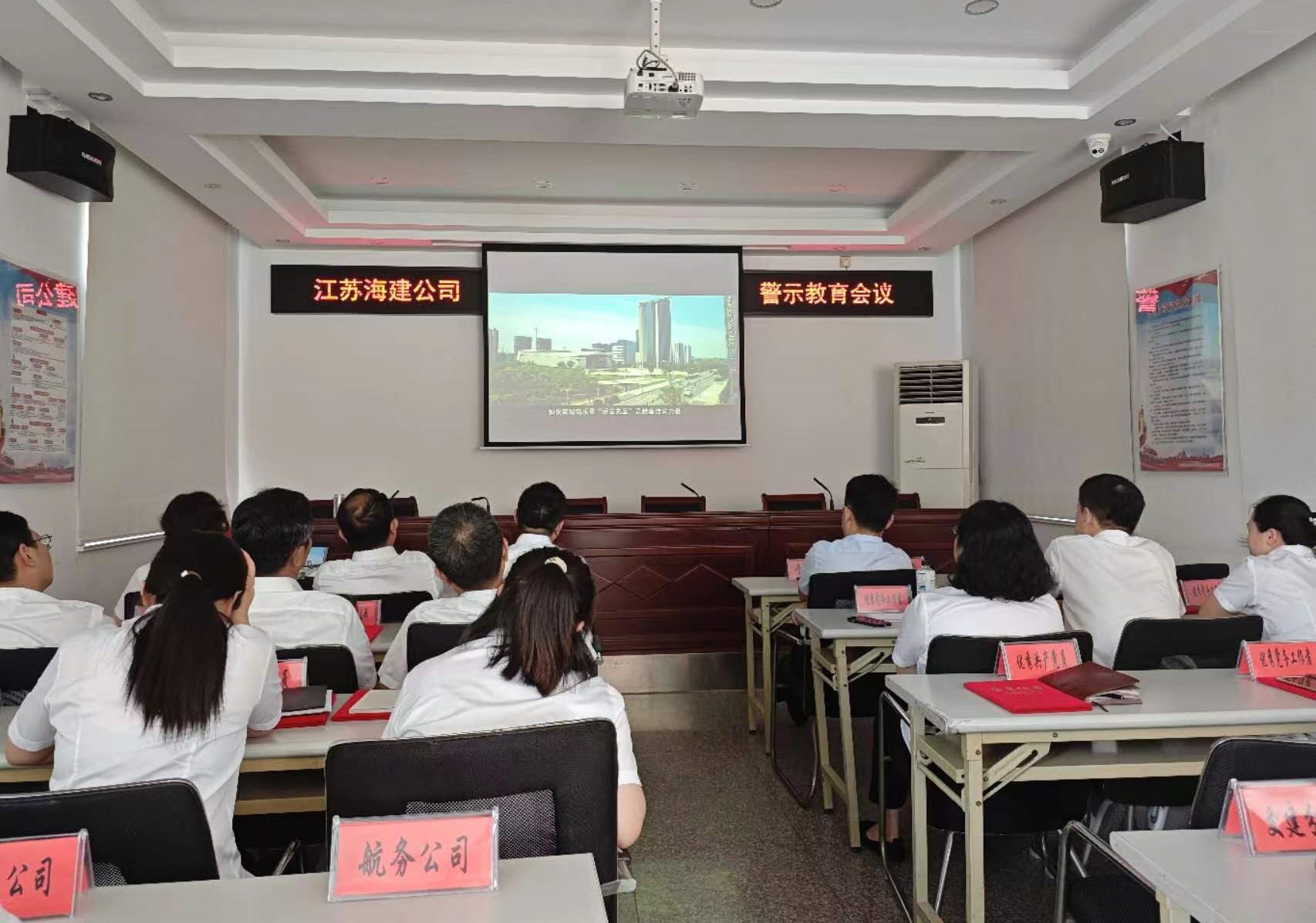 为进一步推动党纪学习教育走深走实,“七一”前夕,江苏海建千亿官方网页版纪委组织召开展警示教育会议,会议由千亿官方网页版党委书记董事长于振国主持,千亿官方网页版班子成员、各部门负责及党员代表近50人参加会议。