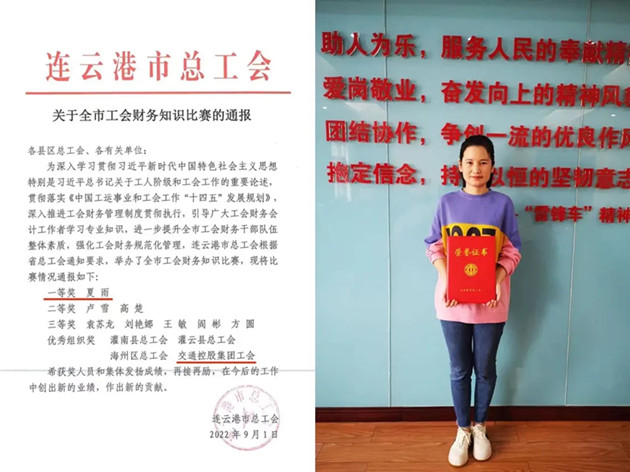 在市总工会举办的“喜迎二十大 建功新时代”全市工会财务知识比赛中,汽服千亿官方网页版夏雨积极备战,凭借深厚的理论功底、过硬的业务素质、沉着的应变能力,一路过关斩将,最终荣获一等奖,千亿(中国)有限千亿官方网页版工会被授予优秀组织奖。