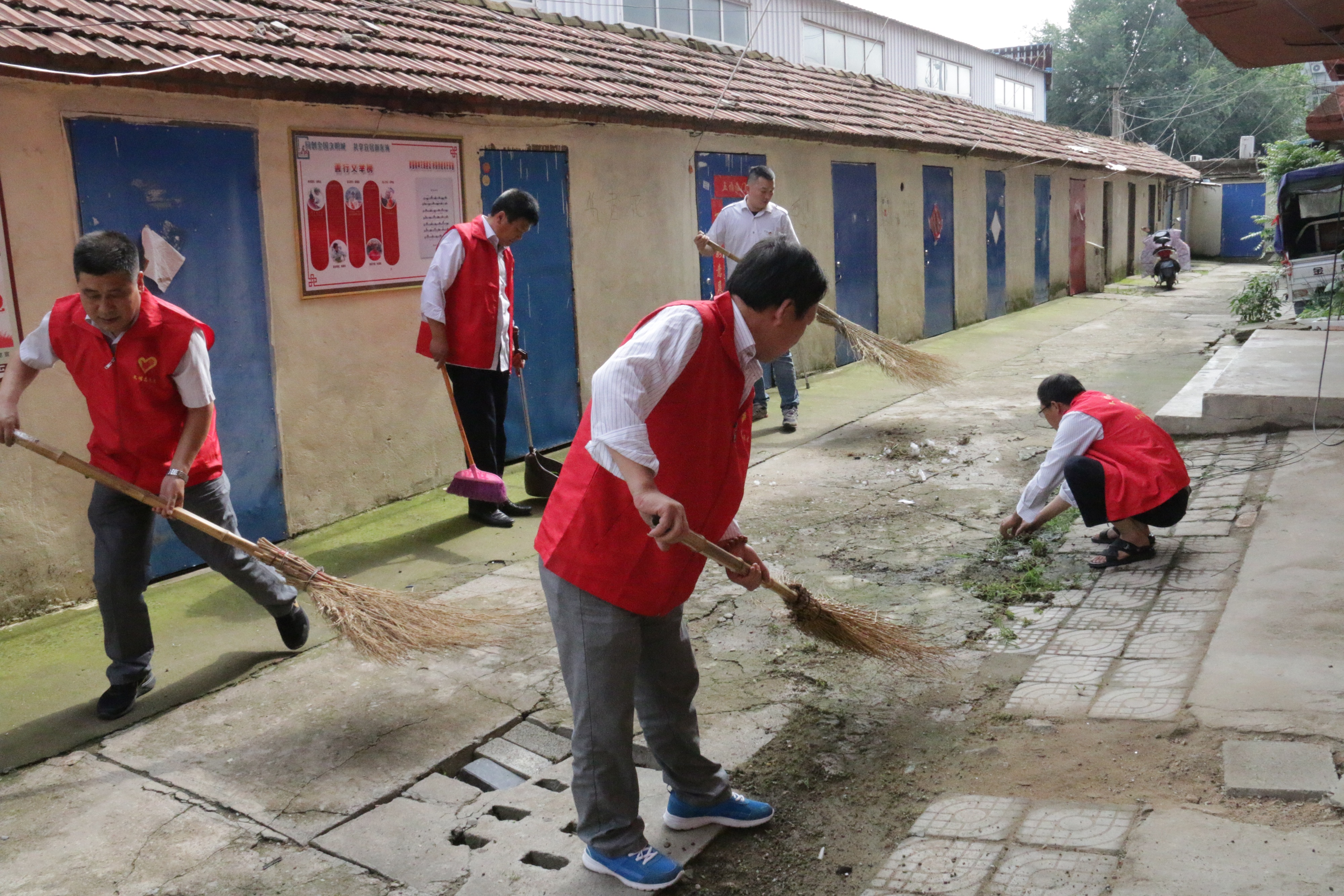 活动最后,大家举起右手,再次集中重温了“入党誓词”,将此次主题党日活动推向了高潮。会议结束后,党员又加入到志愿服务活动中,积极发扬奉献精神,手拿扫帚、铲子等工具,对职工宿舍楼地面杂物和卫生死角进行了清洁打扫。