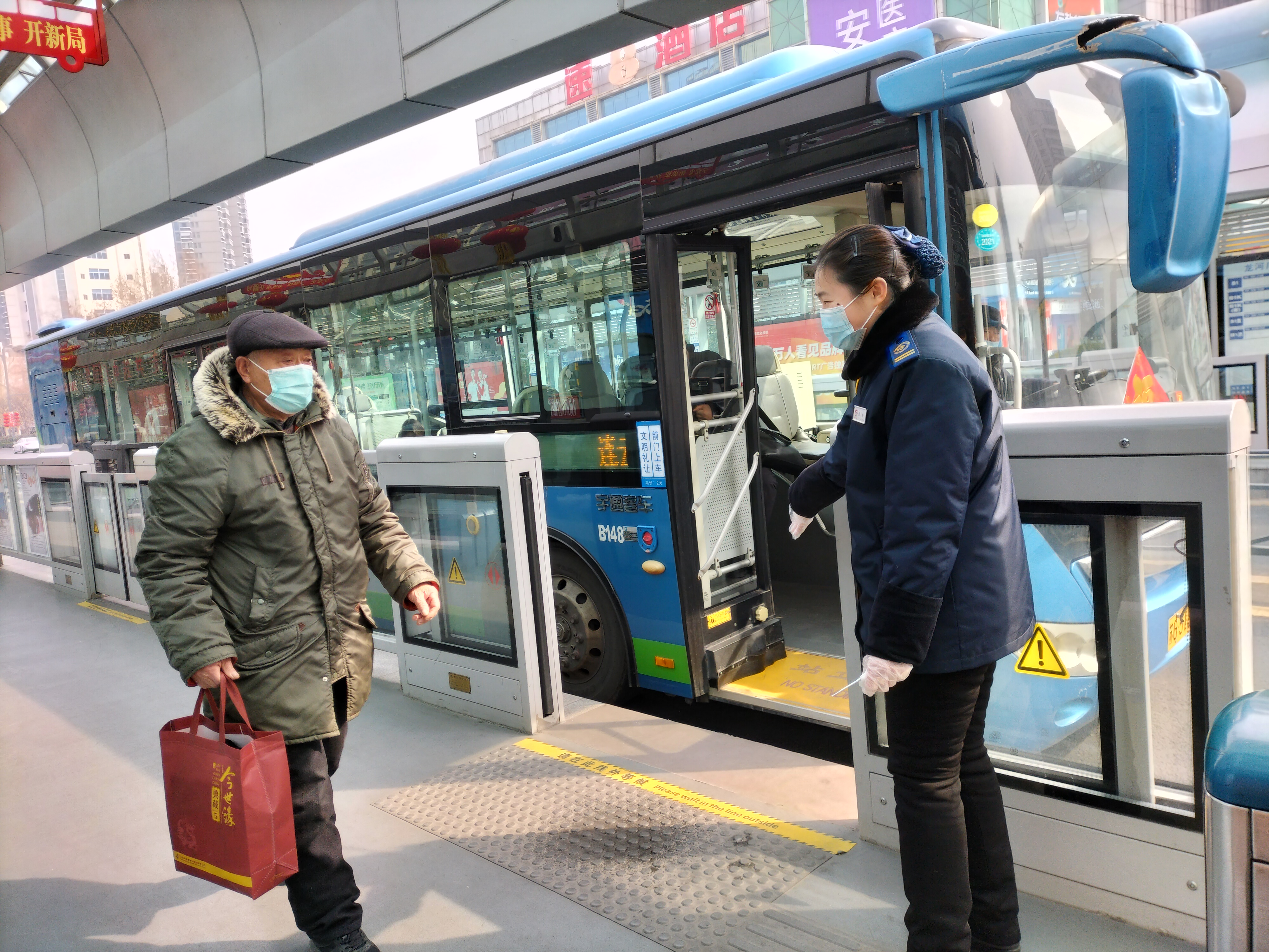 2月10日正月初十晚上六点左右,龙河广场站台内候车的乘客明显比白天有所增加。当班站务员梁静正在闸机旁检查疫情防控工作和引导乘客进站。这时只见一位十一二岁左右胖乎乎的小男孩站在站房门口,神情很着急。梁静连忙上前询问,经过了解后得知,原来小男孩是和妈妈一起乘车的。由于第一次乘坐BRT,他对站点不太熟悉,不小心下错了站点,他妈妈还在车上没和他一起下车。梁静想到小男孩的妈妈没见到孩子一定特别担心,便立刻拿出手机,询问男孩是否知道他妈妈的联系方式。电话打通了,男孩和妈妈说明情况后让孩子在原地等家人来接。大约十分钟后,男孩被妈妈安全顺利地接回去了,男孩的妈妈一直连声表示感谢。梁静连忙说:“您不用客气,这是我们BRT站务员应该做的。春节时人多,请特别注意安全。”