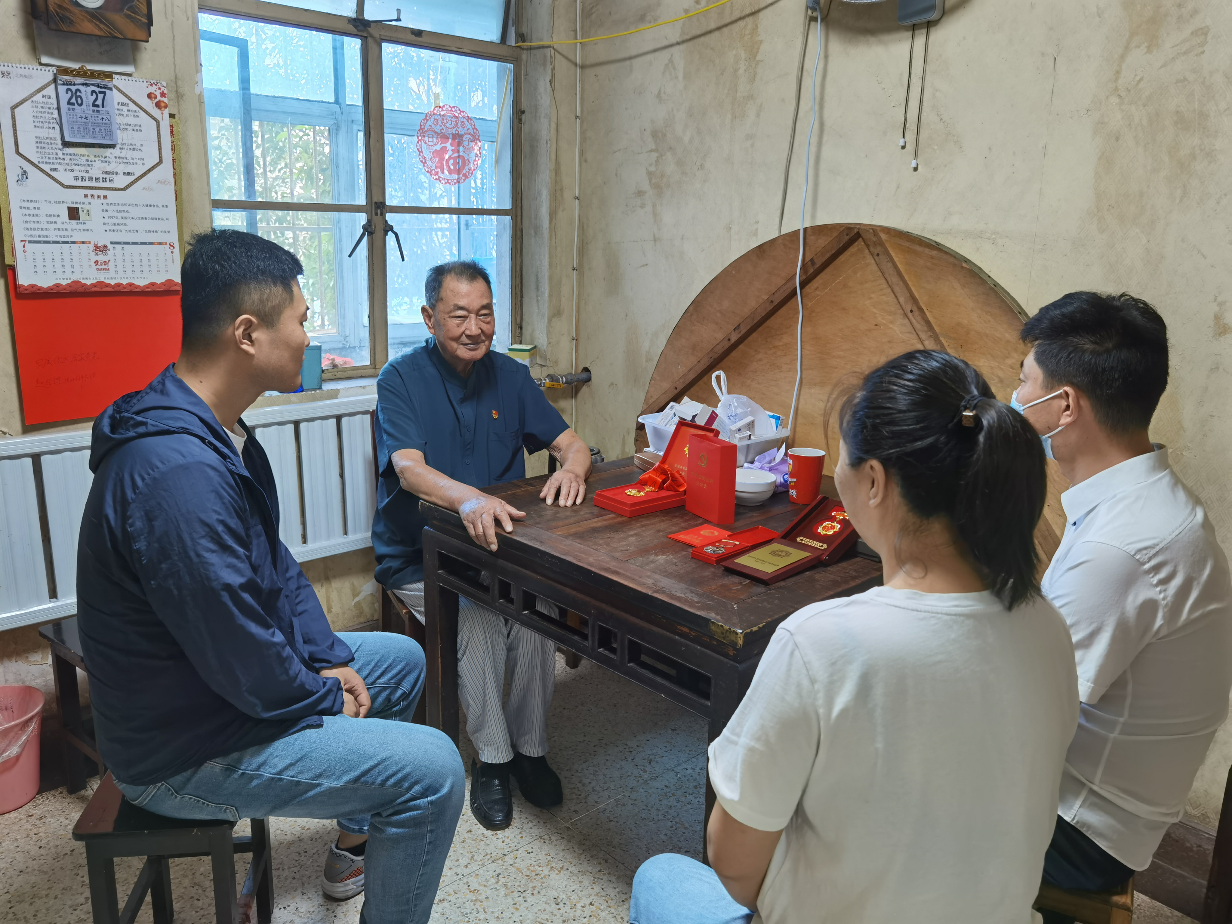 在90岁的老党员王寿玉家中,租赁事业部的党员、积极分子看到了王老“光荣在党50年”纪念章、“全国交通系统先进生产者”等荣誉。这一枚“光荣在党50年”纪念章,承载着老党员对党的初心,也是对他们砥砺初心本色、践行使命担当的最高认可。随后大家与老人促膝交流,询问老人的身体状况和生活情况,倾听他追忆难忘的奋斗岁月、讲述如今的幸福生活。这位有着六十多年党龄的老党员离休后仍十分关心企业发展的情况,也喜爱和年轻人交流,并坚持每天阅读,参与党史相关书籍学习。党员们纷纷表示,要向老党员学习,传承优良作风,永葆共产党员政治本色,为企业发展加油鼓劲、建言献策。