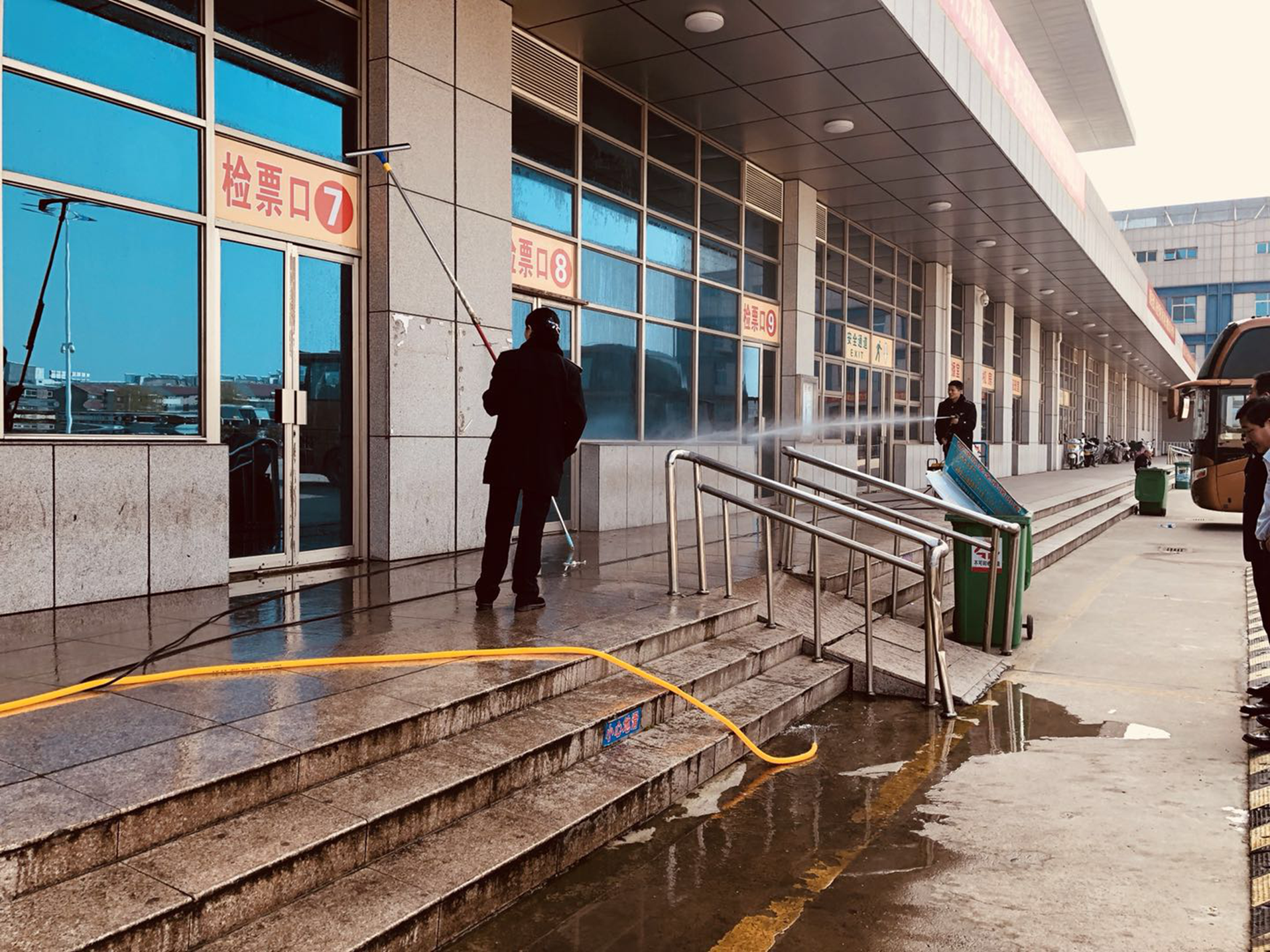 为改善客运站场内外环境,营造职工参与班组创建的良好氛围,3月31日,灌云客运站组织一线站务人员对站场内外环境进行全面清洁。
